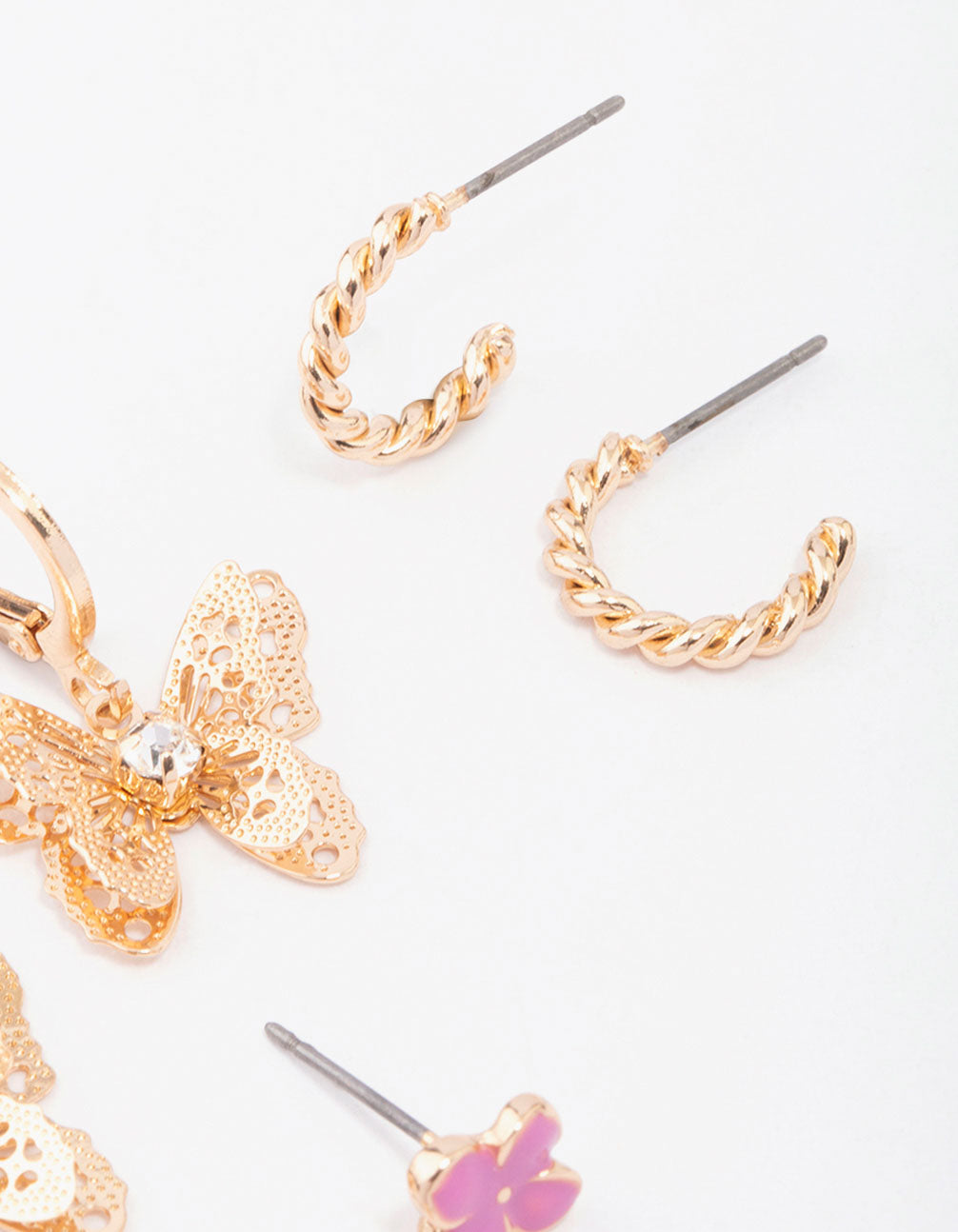 Gold Butterfly Hoop & Stud Earring 4-Pack