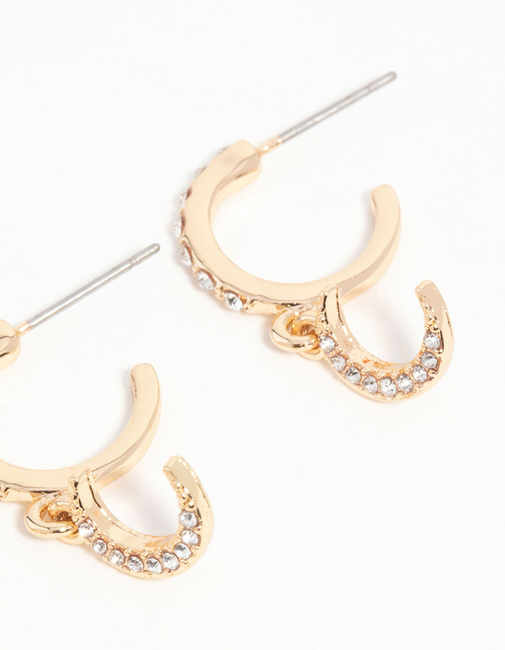 Shine bright with this gold earring pack! Featuring gold-tone earrings, this trio includes dazzling sun hoops with a green diamante center, chic protective evil eye huggies, and elegant double diamante hoops. Perfect for stacking or wearing solo, these celestial-inspired designs add a touch of sparkle to any outfit. Pair them with flowing dresses for a boho look or dress up your jeans and tee for a casual yet polished vibe. Ideal for day-to-night wear, these earrings are your go-to for parties, brunches, or even a little extra flair at work.