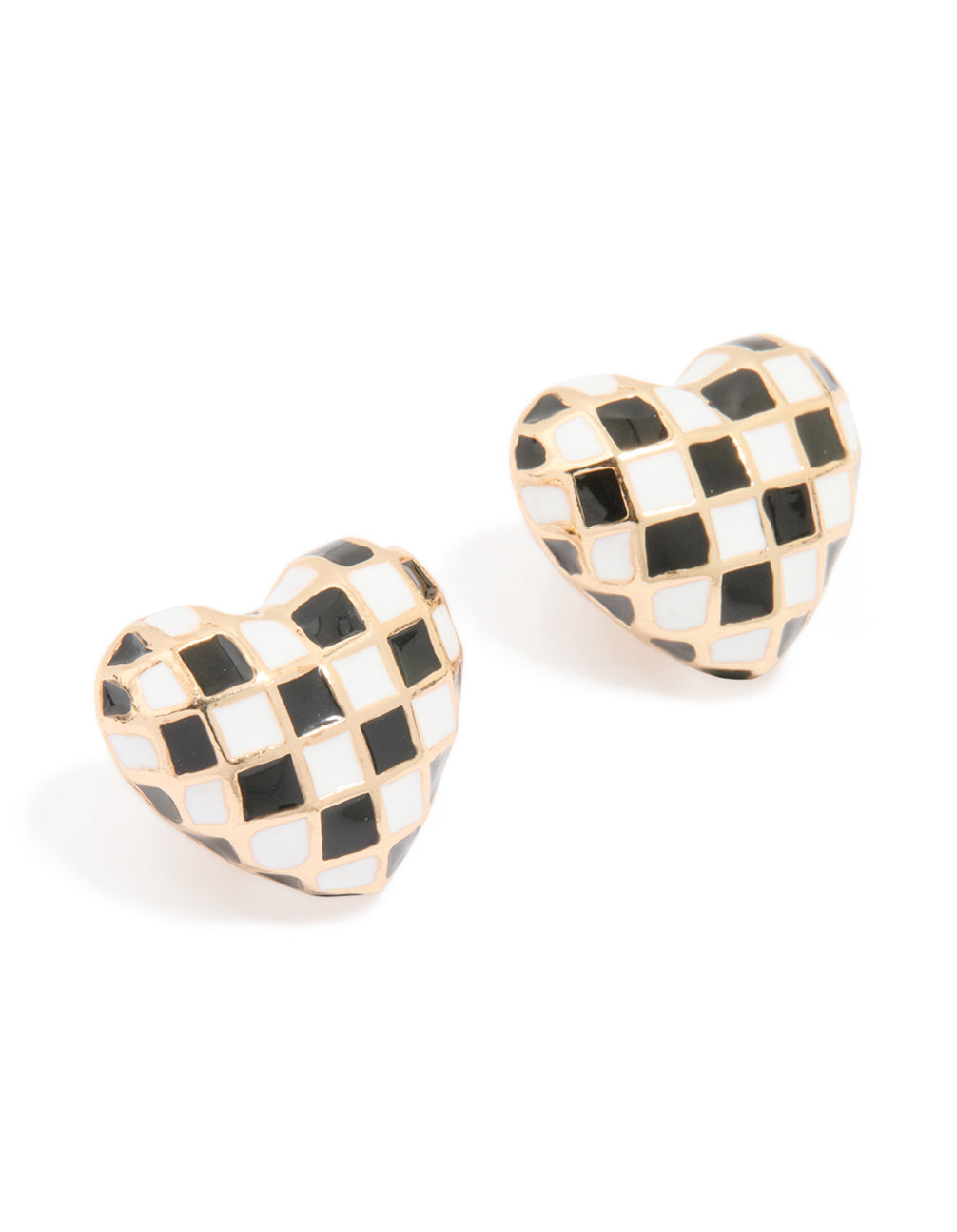 Elevate your style with the Gold Chess Heart Stud Earrings, a perfect blend of playful and elegant design. These heart-shaped stud earrings feature a radiant gold finish that pairs beautifully with both casual and dressed-up looks. Ideal for everyday wear or special occasions, their timeless charm makes them a versatile addition to your jewellery collection. Whether you're accessorising a chic dress or your favourite jeans-and-tee combo, these earrings add a subtle yet striking touch. Perfect for gifting or treating yourself, they're easy to mix and match with other gold jewellery for a coordinated look!