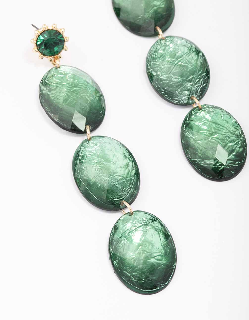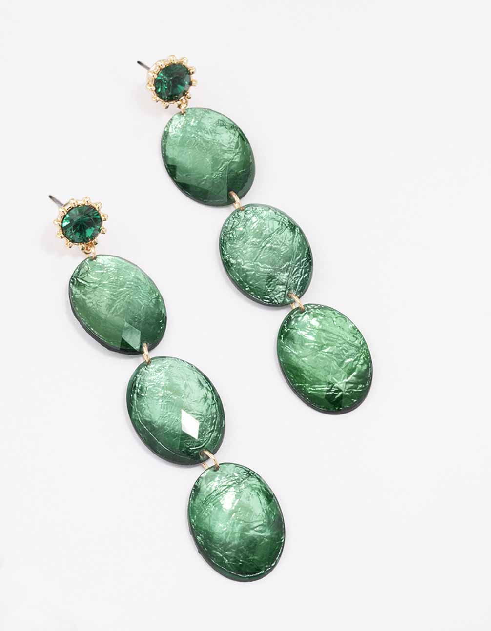 Add impact to your stack with these emerald-coloured, diamante drop earrings.