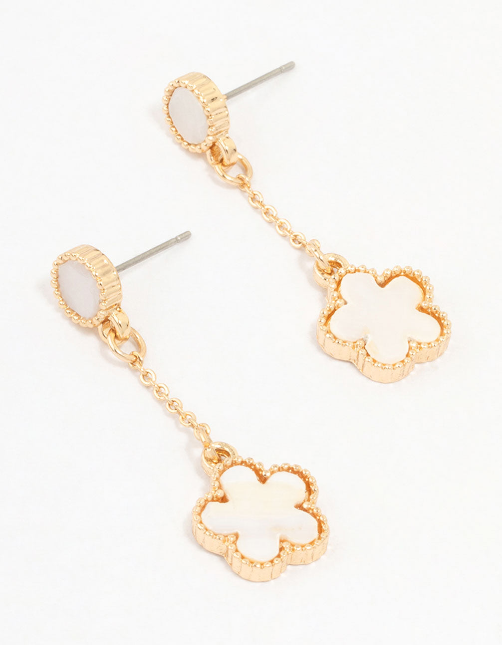 Add some floral style with these earrings.These luxe gold earrings feature the charming flower motif and an elegant chain drop design, perfect for making a stylish statement wherever you go.