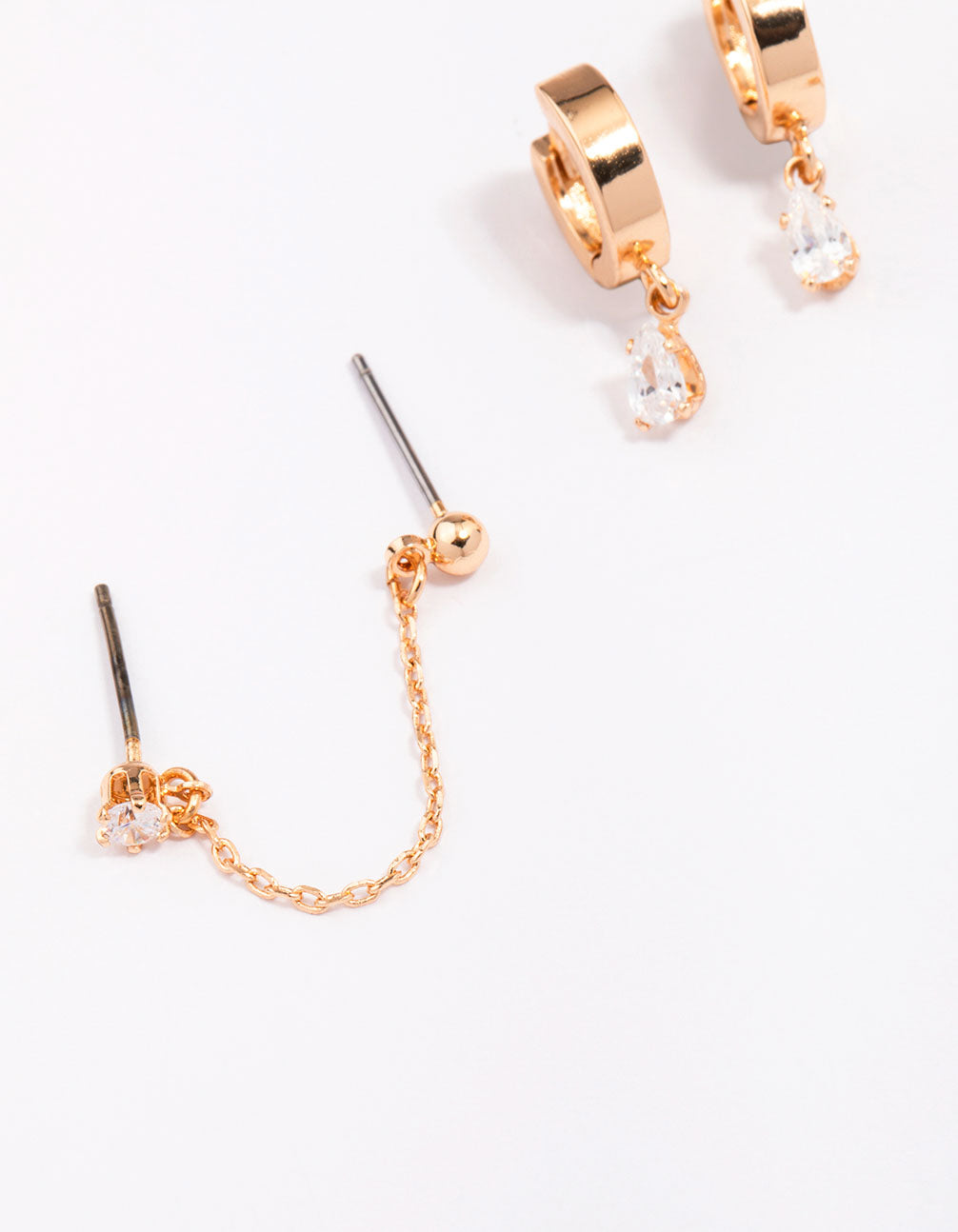 Gold Cubic Zirconia Chain Stud & Hoop Earring 3-Pack