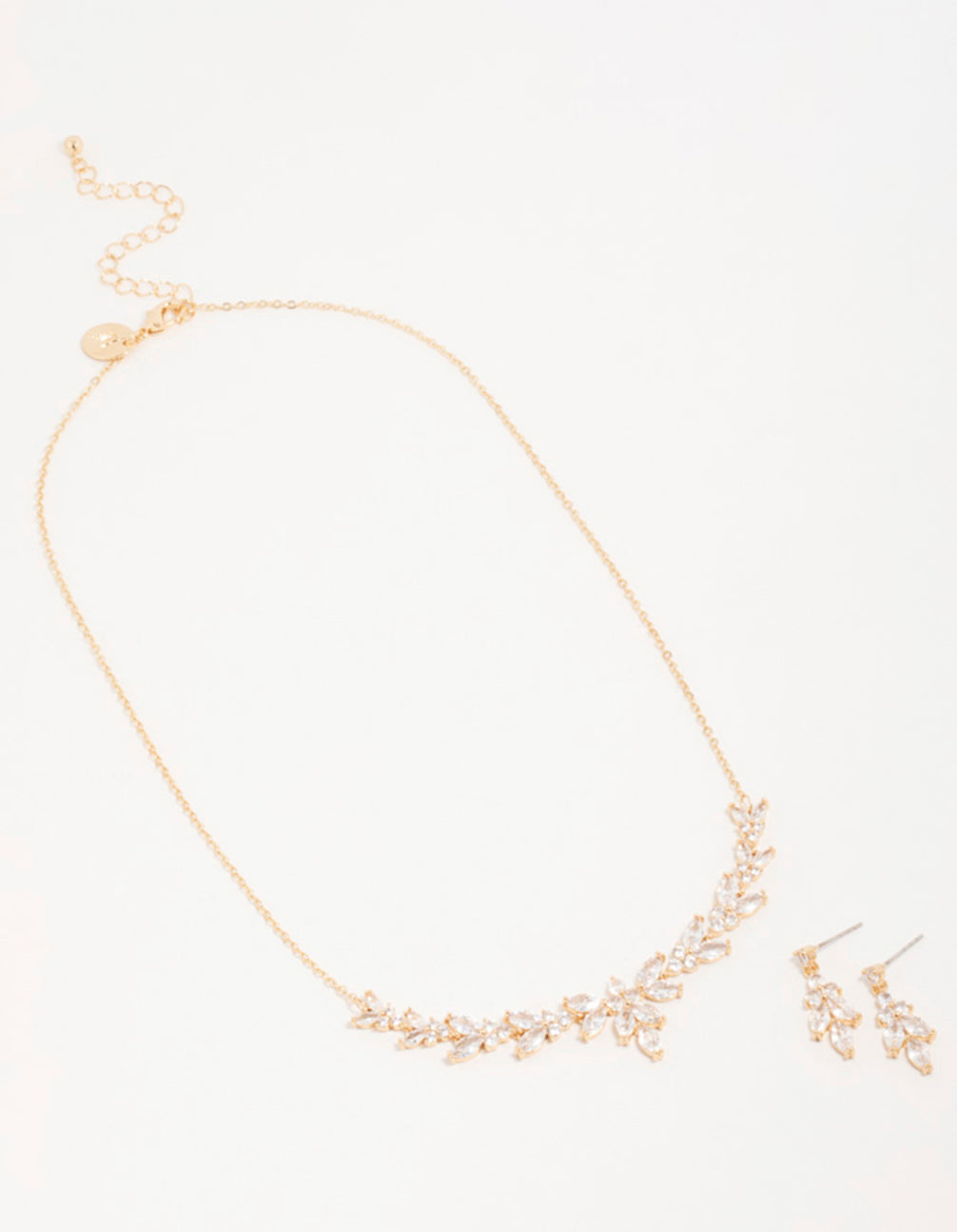 Gold Cubic Zirconia Leaf Vine Necklace & Earrings Set