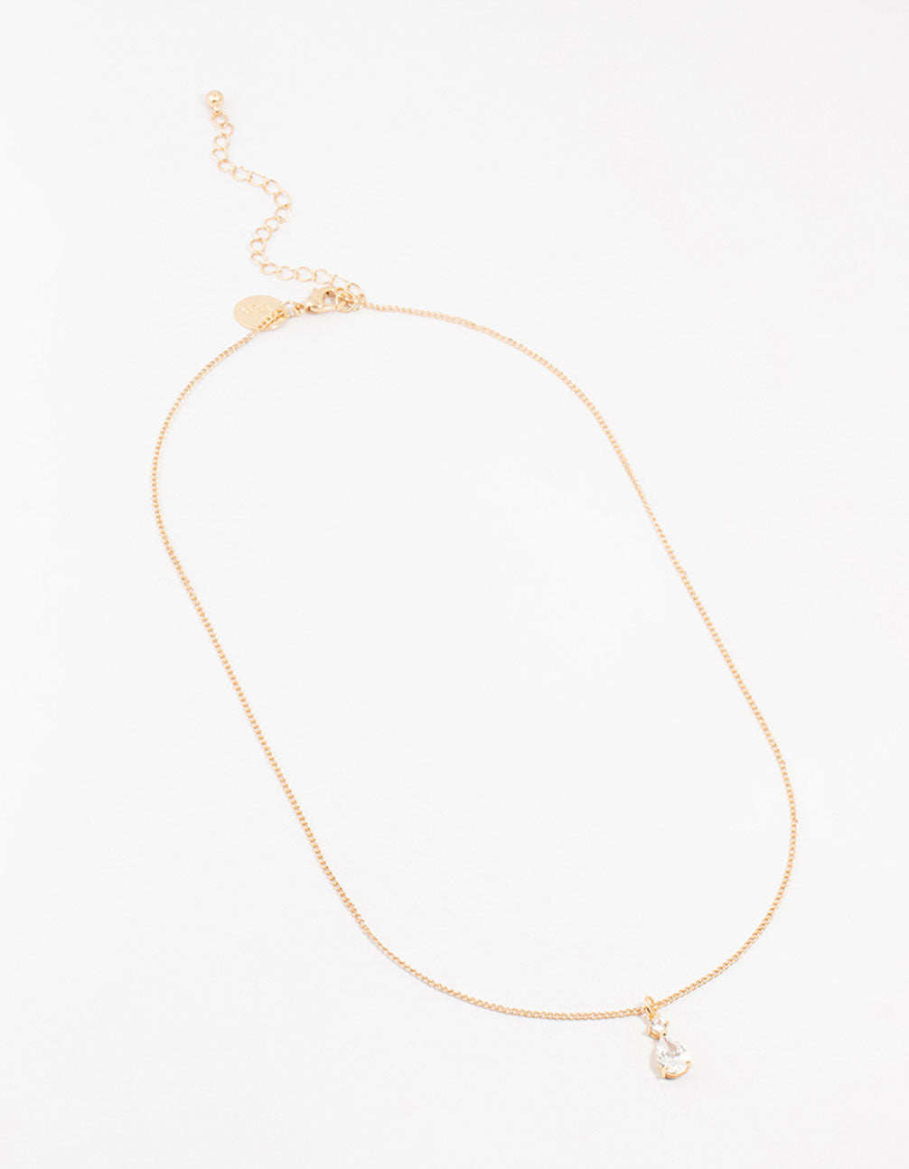 Gold Cubic Zirconia Pear Drop Pendant Necklace