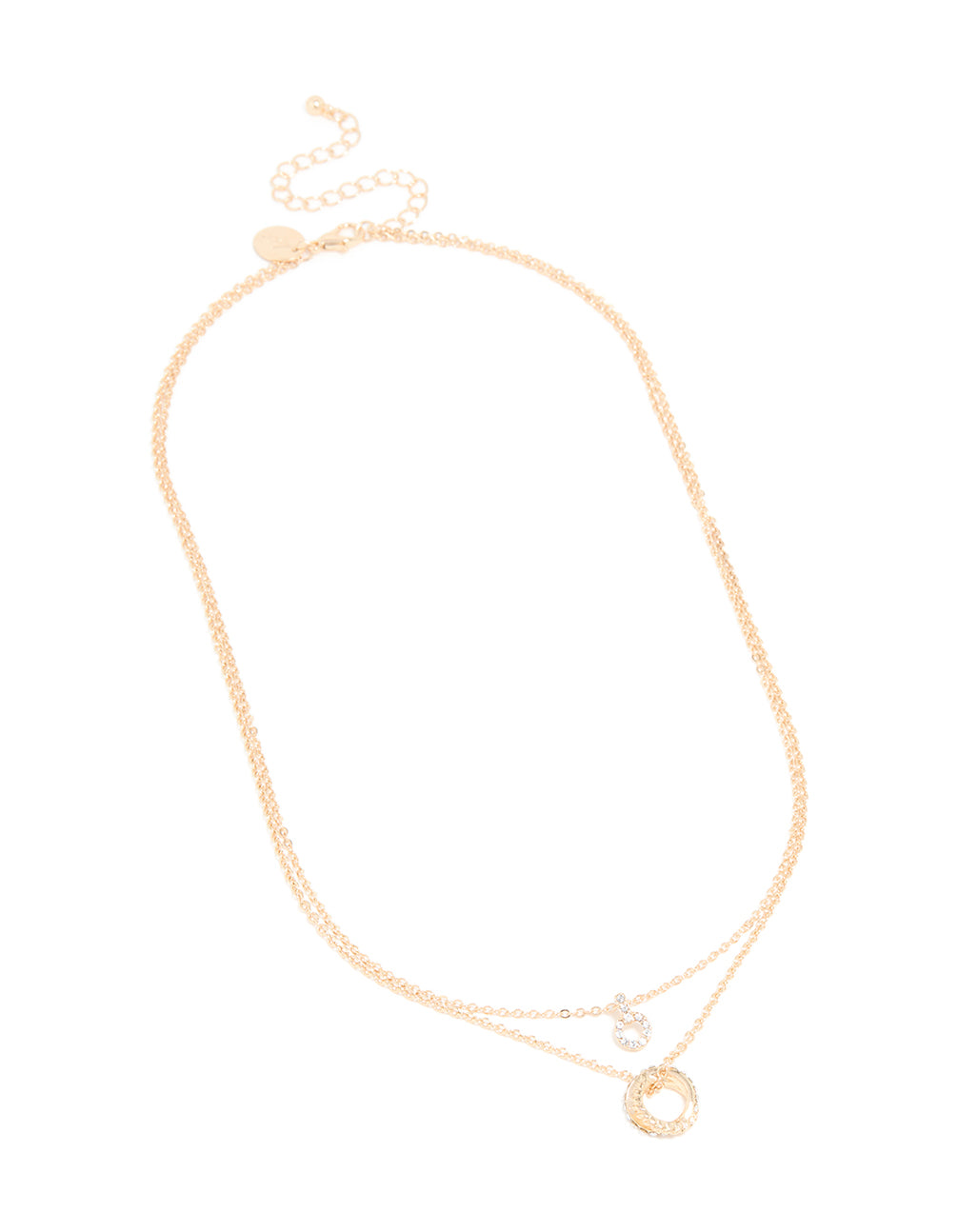 • Gold Diamante Circle Pendant Layered Necklace - link has visual effect only