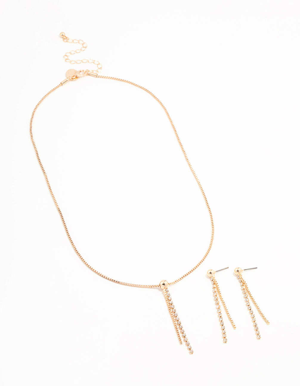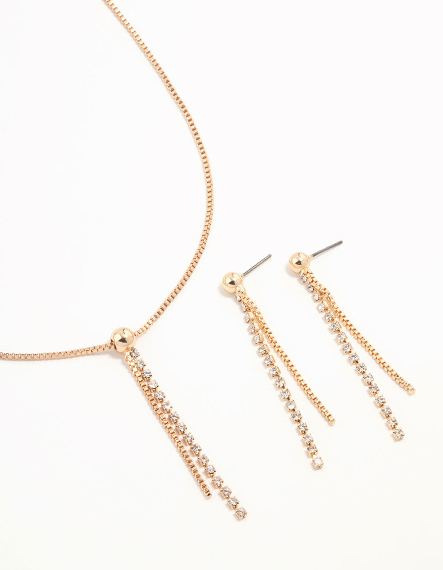 Delight your loved ones with a memorable gift set. This set includes diamante-encrusted cupchain earrings and a coordinating drop pendant necklace, ensuring they feel glamorous.
