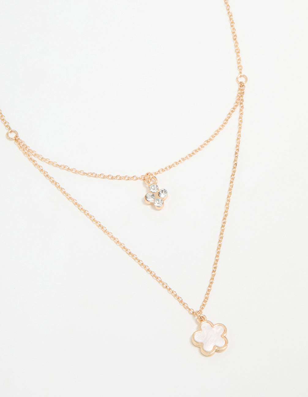Gold Diamante Flower Layered Necklace