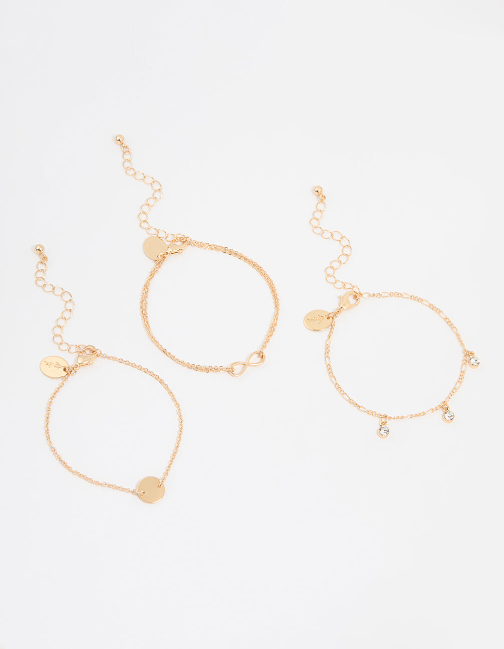 Gold Diamante Infinity Circle Bracelets 3-Pack