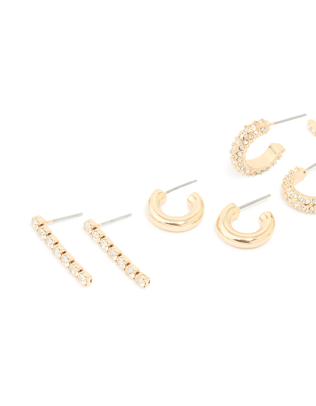 Gold Diamante Mixed Drop & Stud Earrings 5-Pack