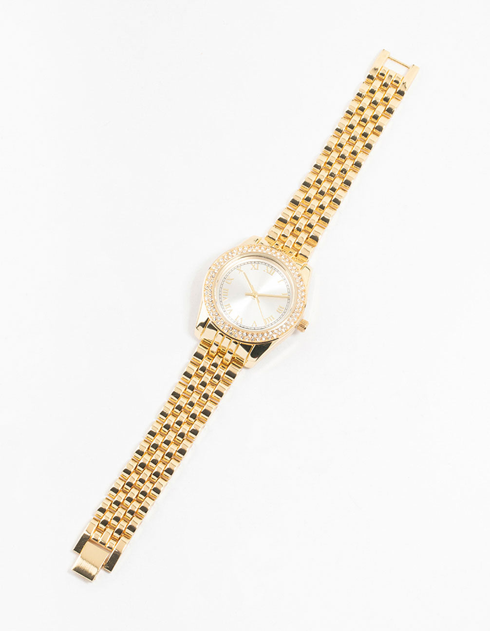 Elevate your wrist game with the captivating Gold Diamante Outer Medium Watch. This stunning timepiece blends glamour and sophistication, featuring a gleaming gold-tone case that sparkles with a constellation of dazzling diamantes.