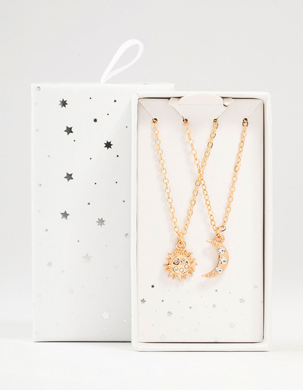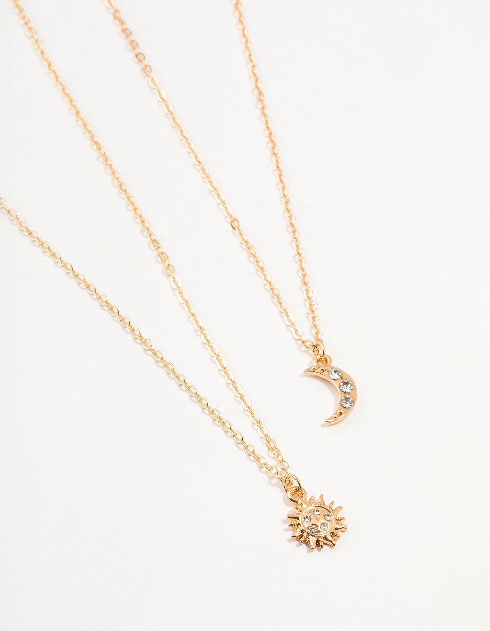 Gold Diamante Sun & Moon Necklaces 2-Pack