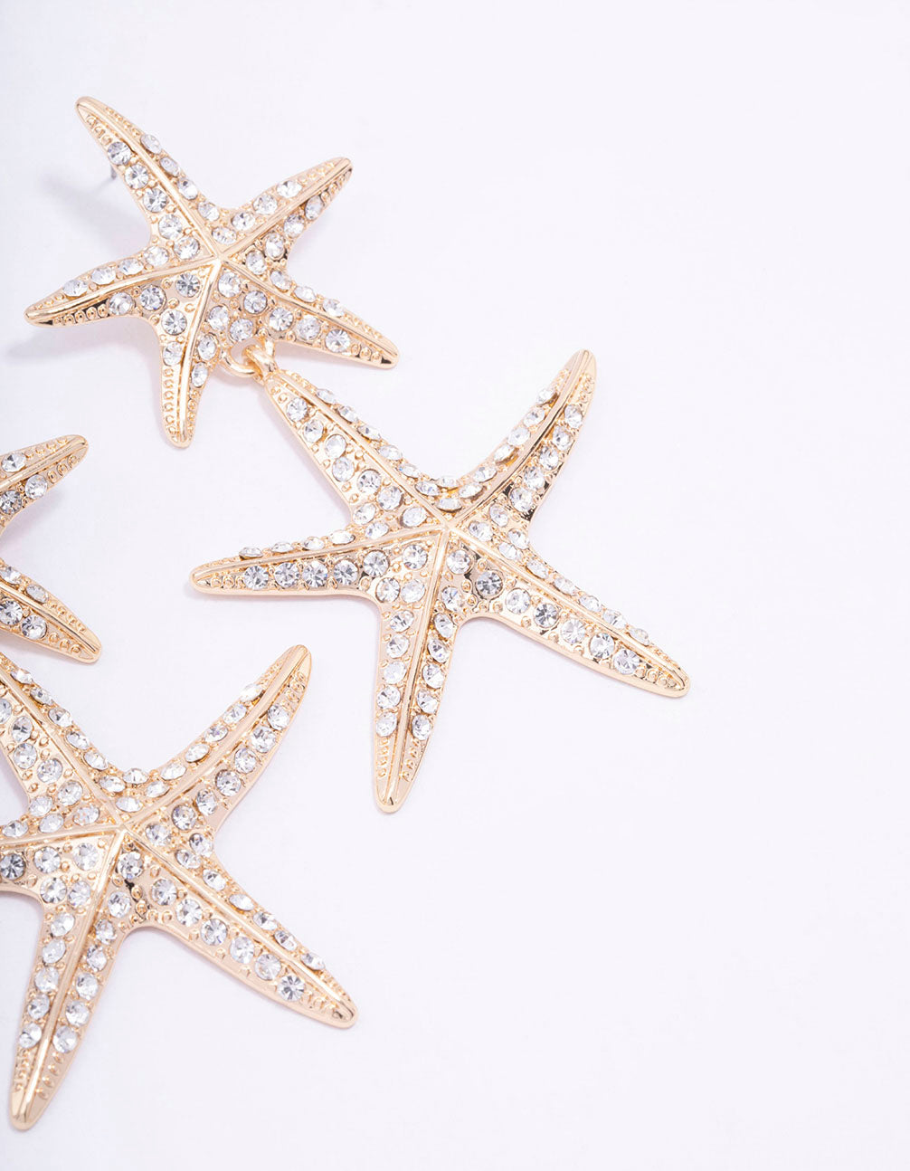 Style these Gold Double Diamante Starfish Drop Earrings with a set of simple studs for a layered look.
