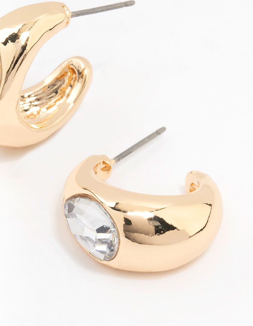 Embrace the IT girl look with these stunning gold hoop earrings. Featuring the classic trendy hoop shape adorned with a sparkly diamante feature, they're perfect for adding subtle glitz and glam to any outfit.