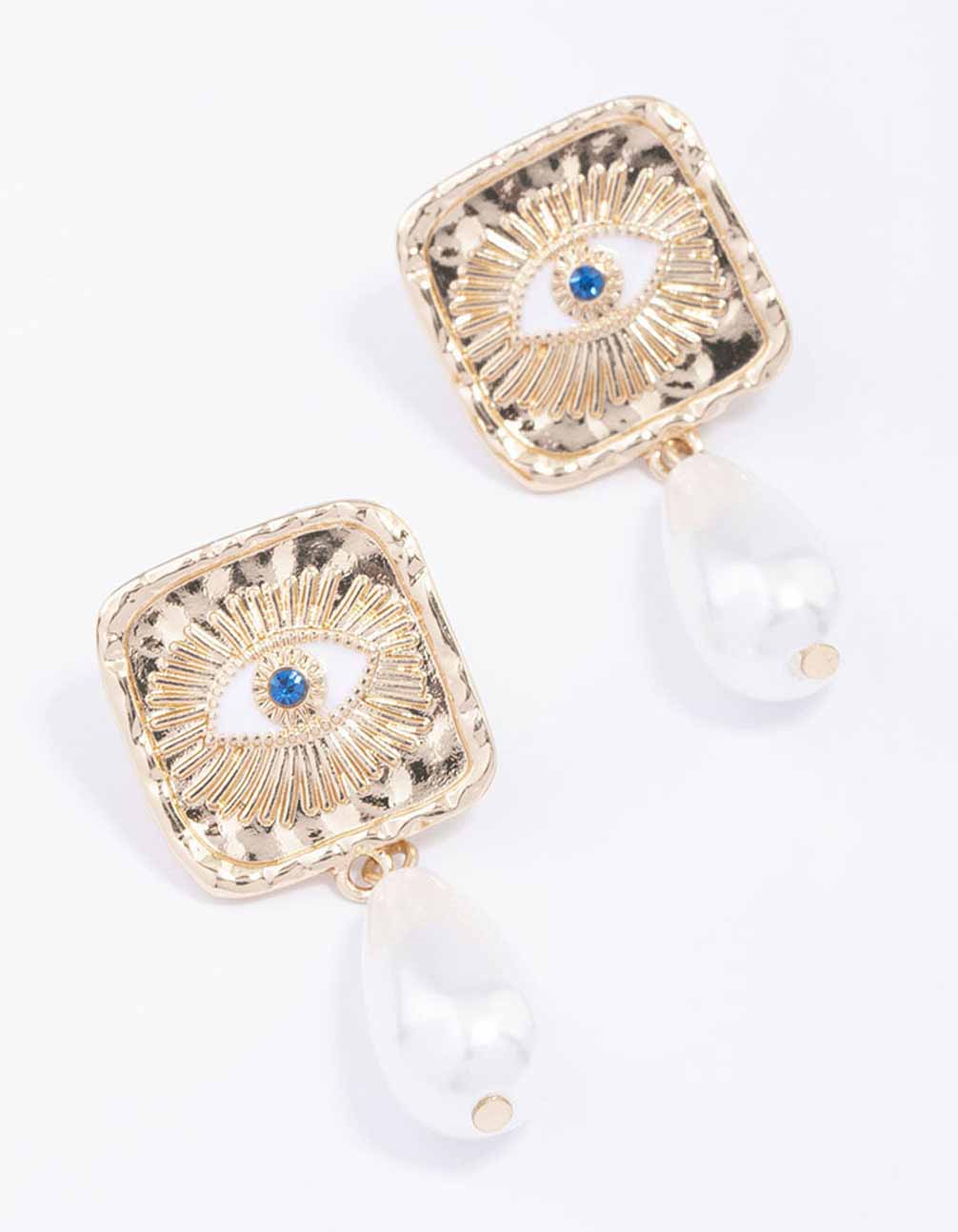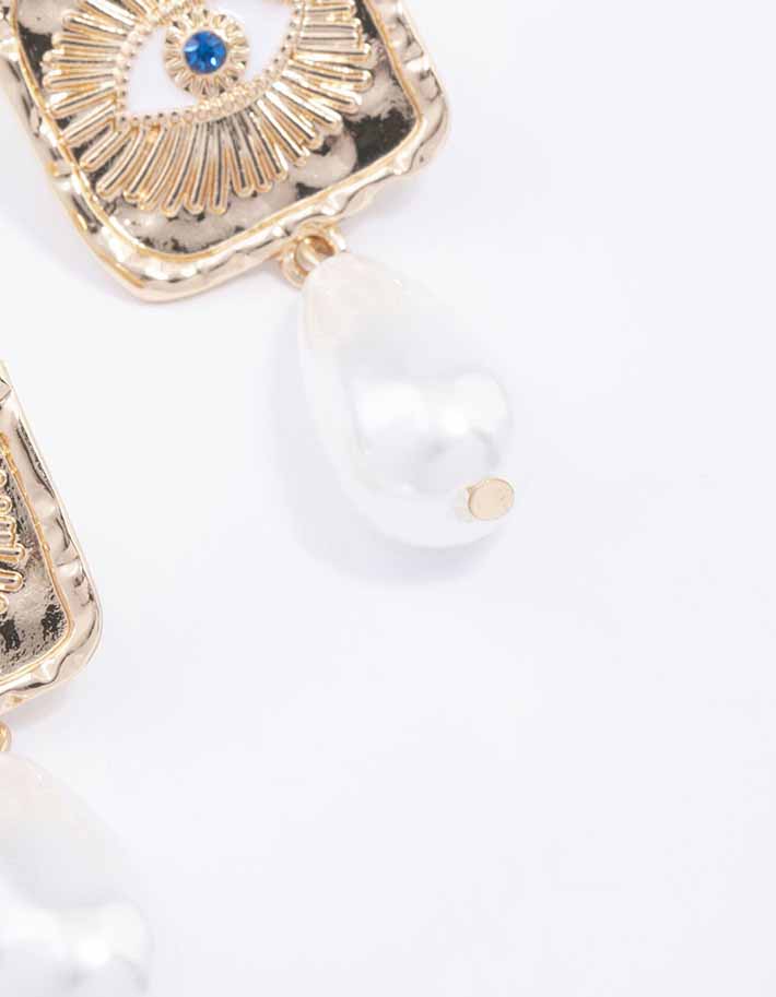 Gold Evil Eye Pearl Drop Earrings