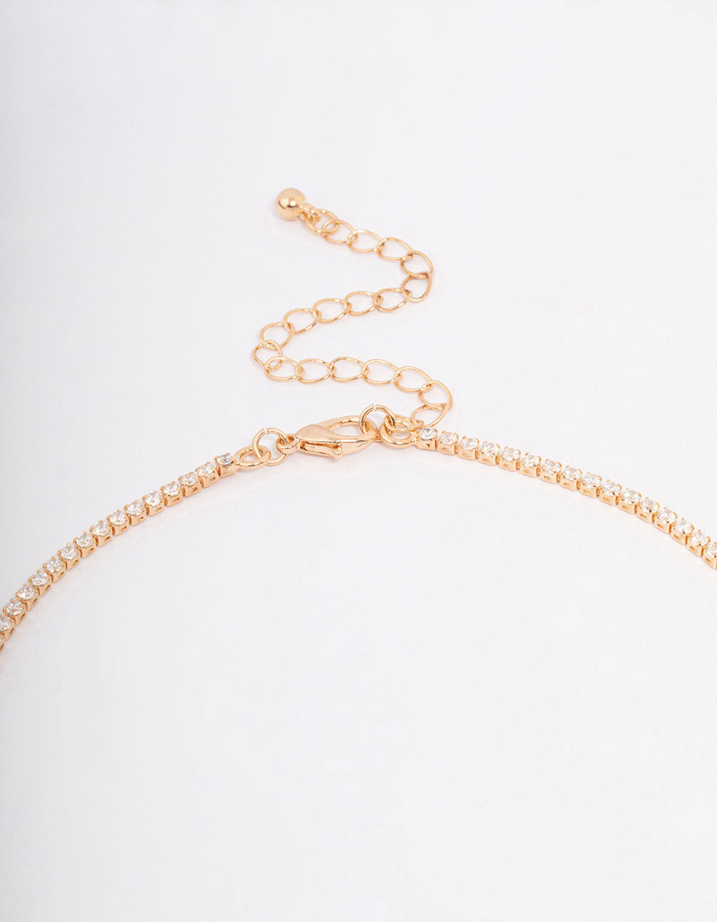 Gold Fine Ribbon Cubic Zirconia Lariat Necklace
