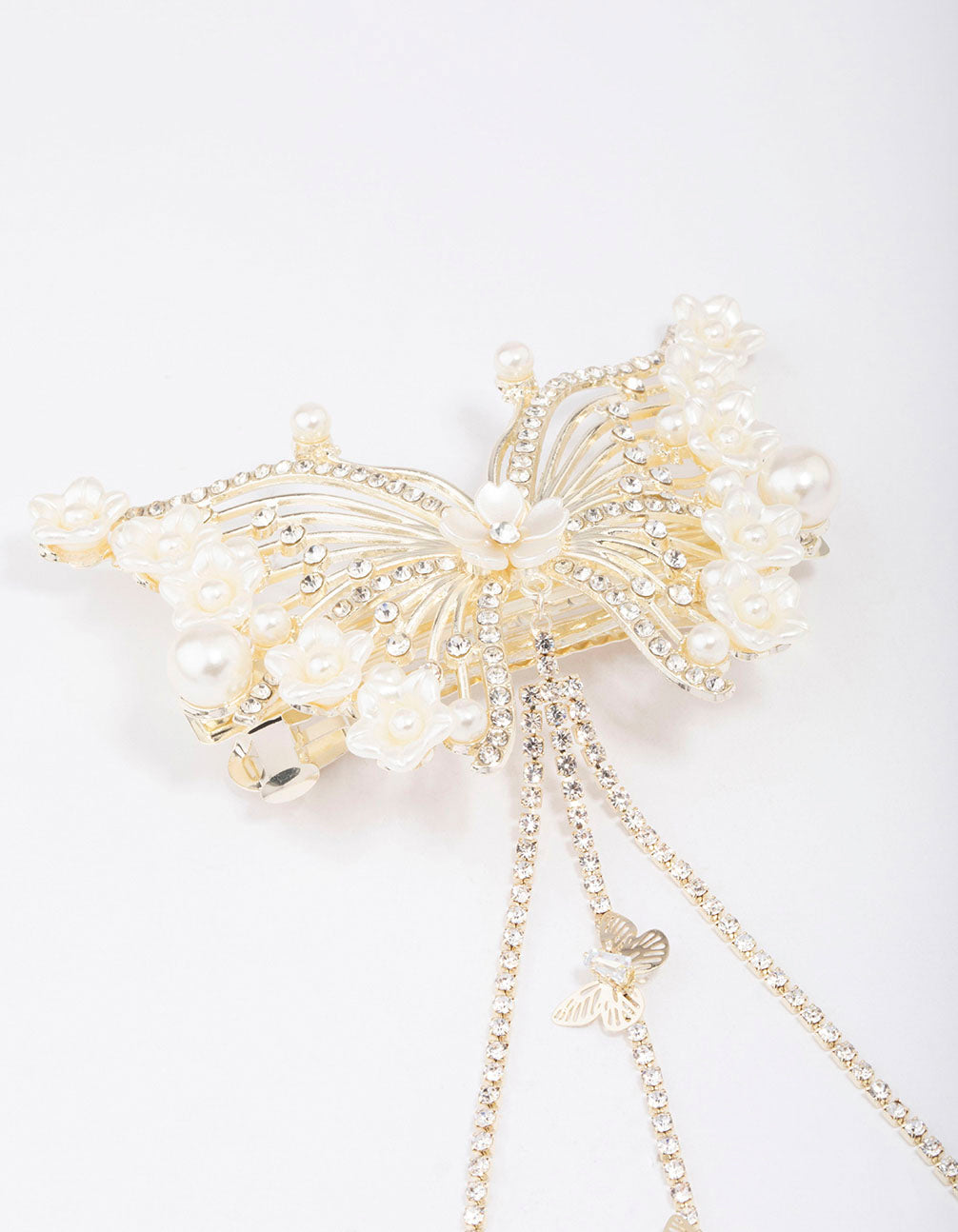 Gold Floral Diamante Butterfly Hair Claw Clip