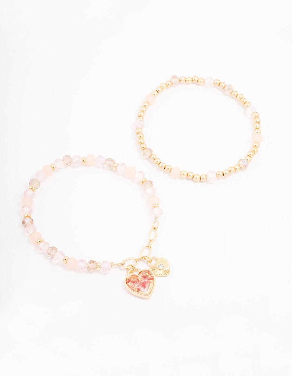 Gold Heart Charm Beaded Bracelet Gold Heart Charm Beaded Bracelet Gold Heart Charm Beaded Bracelet