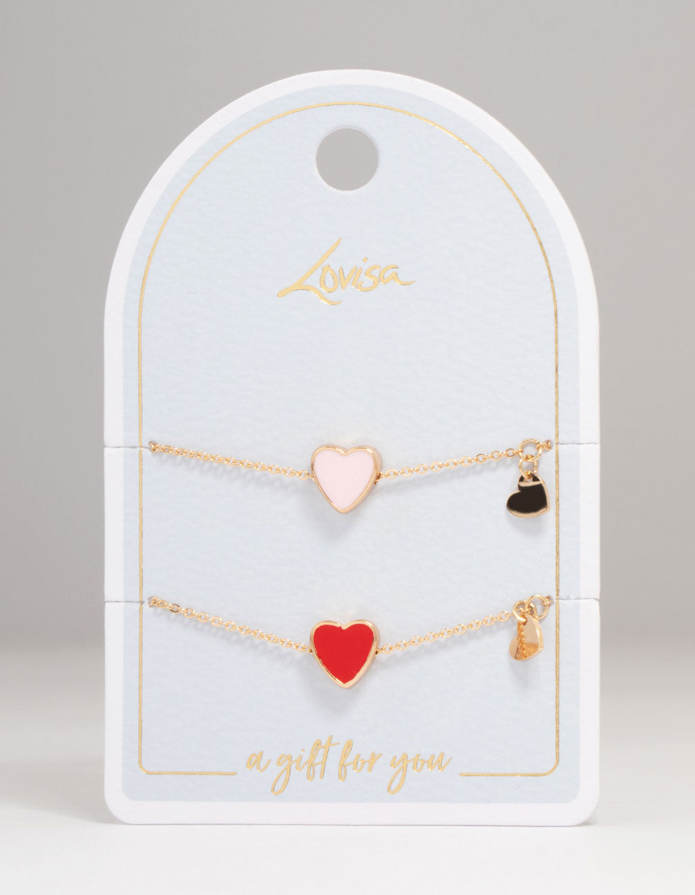 Double the charm with this Gold Heart Charm Bracelets Pack! This delightful set of bracelets is perfect for those who love versatile and stylish jewellery. Featuring delicate gold-tone designs adorned with sweet heart-shaped charms, these bracelets are ideal for layering or wearing solo. Whether you're dressing up for a party or adding a subtle sparkle to your everyday outfit, these chic bracelets are the perfect match. Pair them with a dainty necklace or some gold earrings for a coordinated look, or stack them with bangles for a more playful vibe. Perfect for gifting or treating yourself, these charm bracelets are a must-have addition to any jewellery collection!