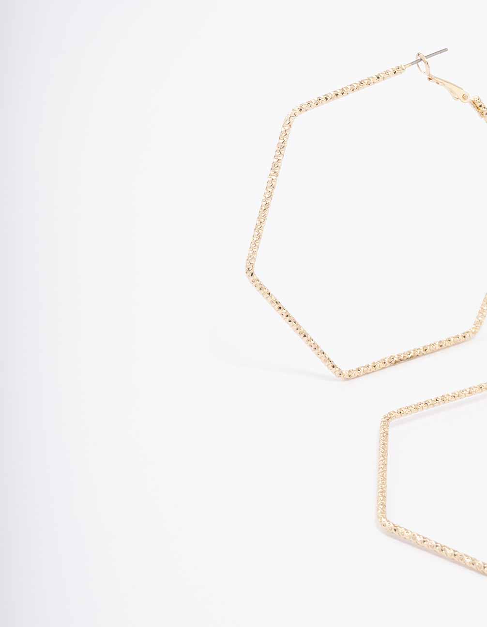 These impactful hoops are designed in a hexagon shape for a geometric finish to your stack.