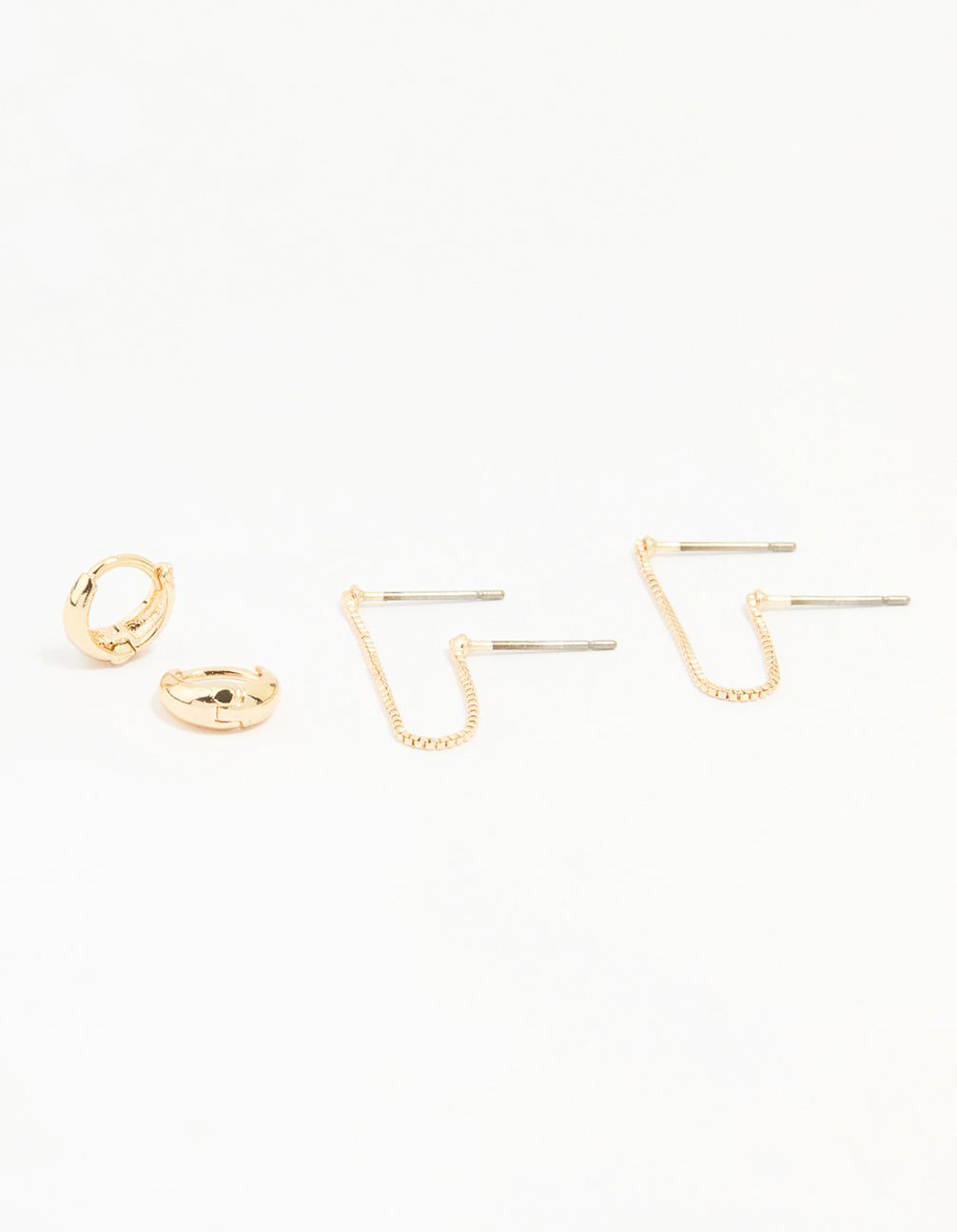 Looking to level up your jewellery game? The Gold Hoop & Loop Chain Earrings 2-Pack is here to deliver effortless style. This curated set features a pair of small chunky hoops and sleek loop chain earrings, both in a polished gold finish. Perfect for mixing and matching or stacking with your favourite earring stacks, these versatile pieces are your new go-to for day-to-night looks. Whether you're heading to brunch in a cute sundress or dressing up for a big night out, these gold earrings add just the right amount of shine. Pair the chunky hoops with a casual blazer for understated chic, or let the loop chain earrings steal the spotlight with a sleek ponytail and an evening dress. Timeless yet stylish, this set is a must-have for any jewellery lover!