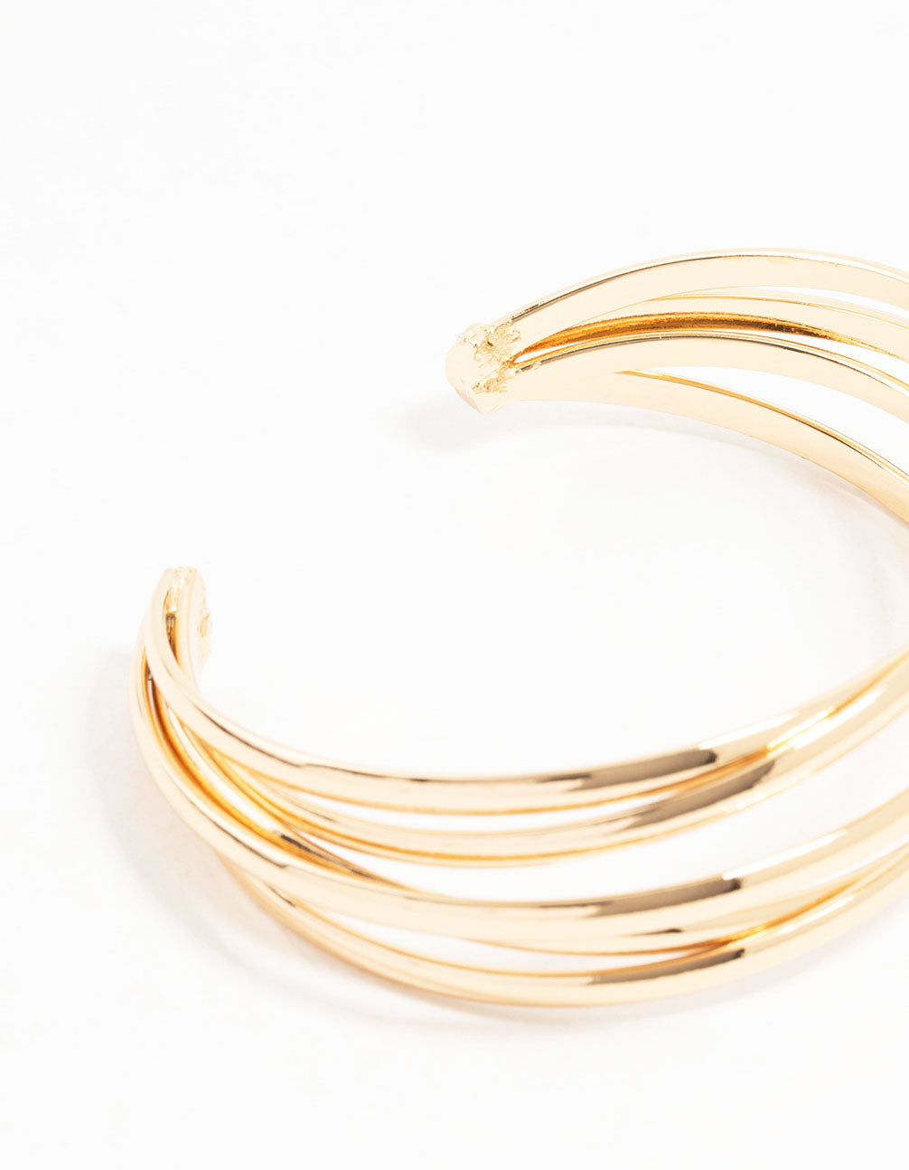 This wrist cuff features a collection of thin gold bands, layered together for added volume.
