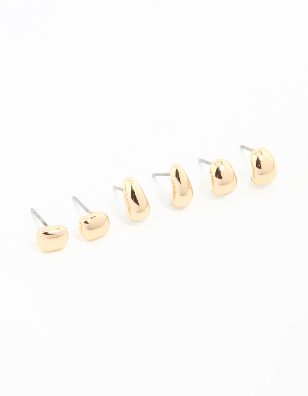 Gold Mini Stud & Hoop Earrings 3-Pack