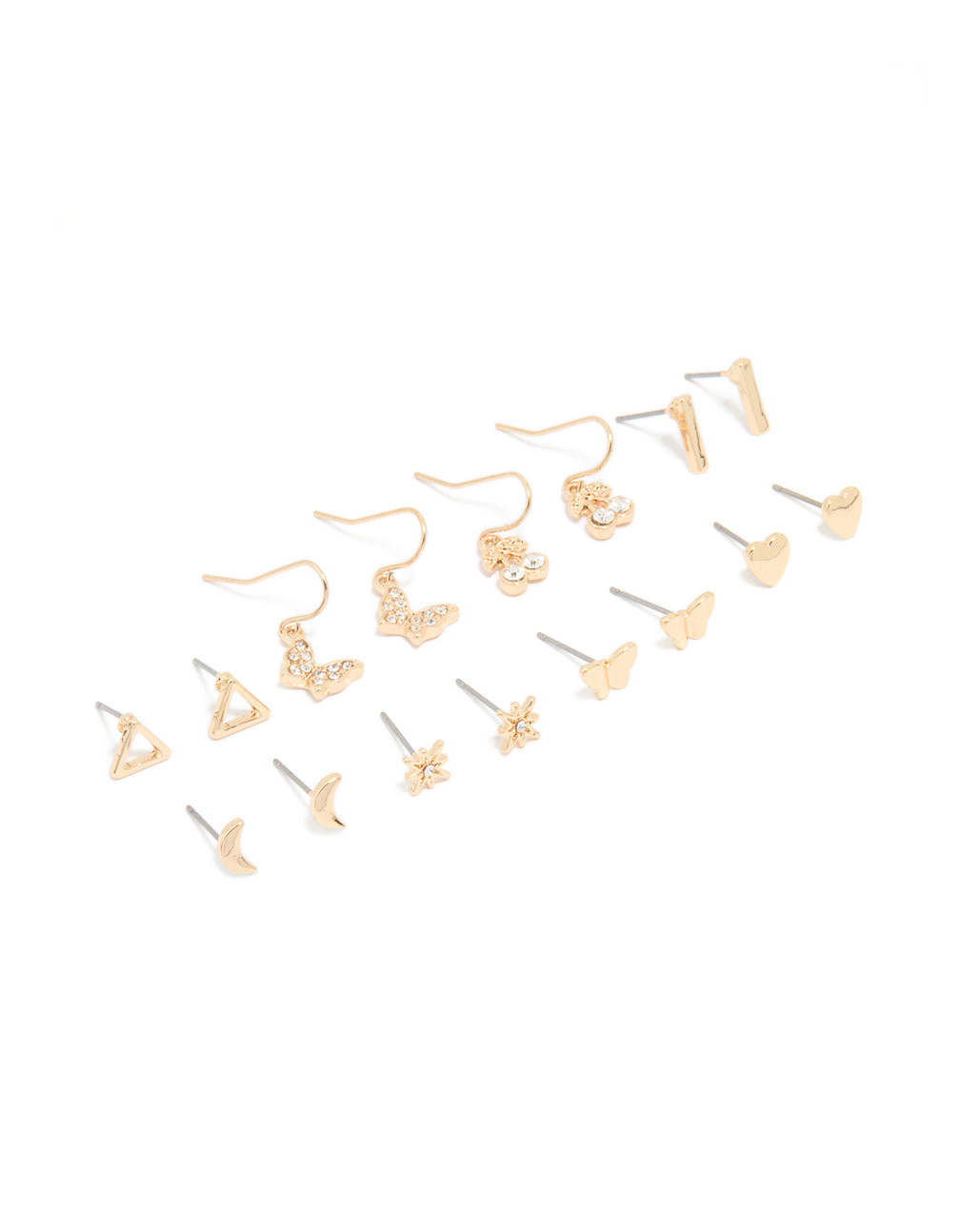 Add a playful twist to your jewellery collection with the Gold Mixed Diamante Cherry Earrings 8-Pack! This fun and versatile set features gold-toned earrings in a mix of styles, including dainty cherry designs, sparkling diamante studs, and chic drop designs. Perfect for dressing up or adding flair to your everyday look, these earrings are ideal for casual brunches, fun nights out, or even as a statement accessory for a party. Pair them with a flowy dress or jeans and a cute top for effortless charm. With their vibrant shapes and shimmering accents, this pack gives you endless options to mix, match, and style your way! A must-have for anyone who loves playful yet elegant jewellery.