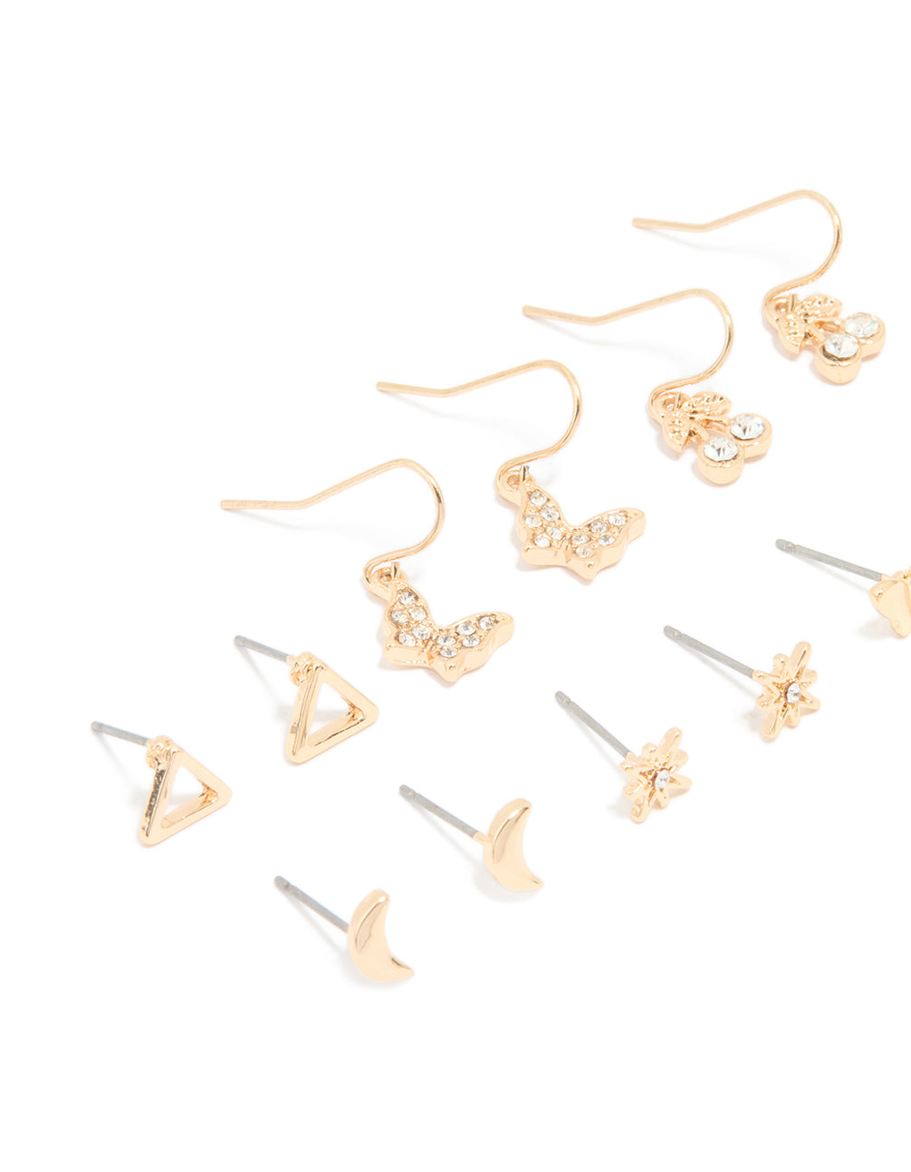 Gold Mixed Diamante Cherry Earrings 8-Pack