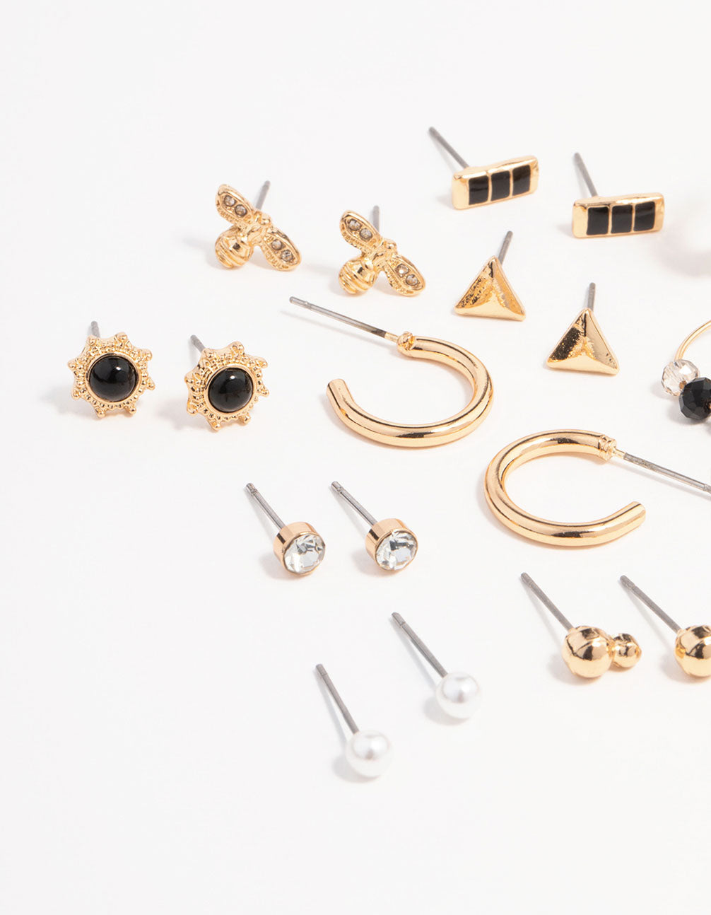 Upgrade your jewellery collection with the Gold Mixed Stud Earrings Pack, the ultimate set for earring lovers and stack enthusiasts. Featuring a variety of chic gold-toned studs in different shapes and sizes, this versatile pack is perfect for mixing, matching, and layering. From casual brunches to nights out, these earrings add a touch of effortless style to any outfit. Pair them with your favourite gold necklaces or rings for a coordinated look, or wear them solo for a minimalist vibe. Whether you're after classic studs or playful accents, this pack has you covered. Perfect for every occasion and every mood!