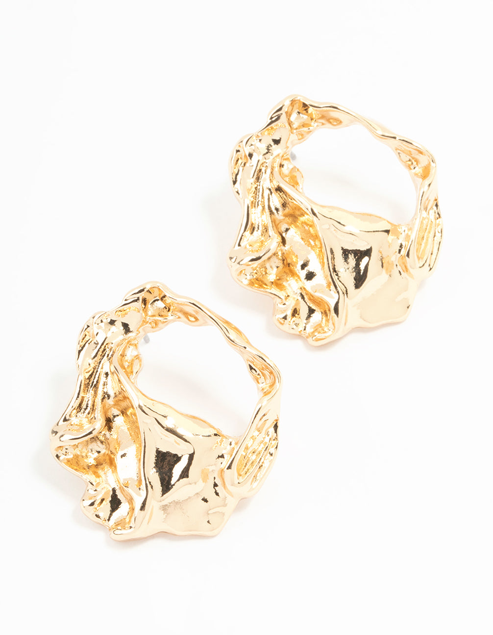 Elevate your style with Gold Molten Statement Stud Earrings! Their unique texture adds modern flair, perfect for making a bold impression.