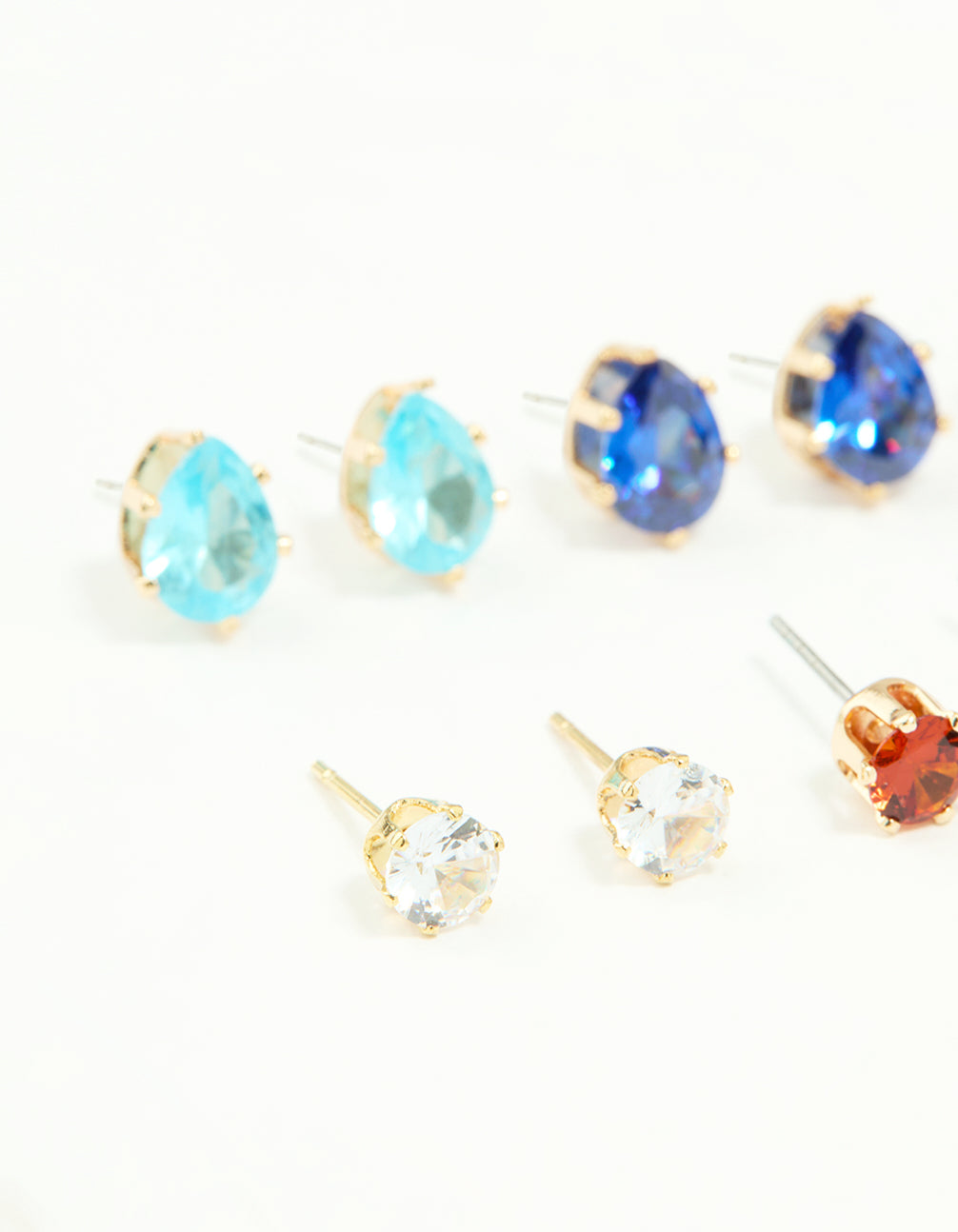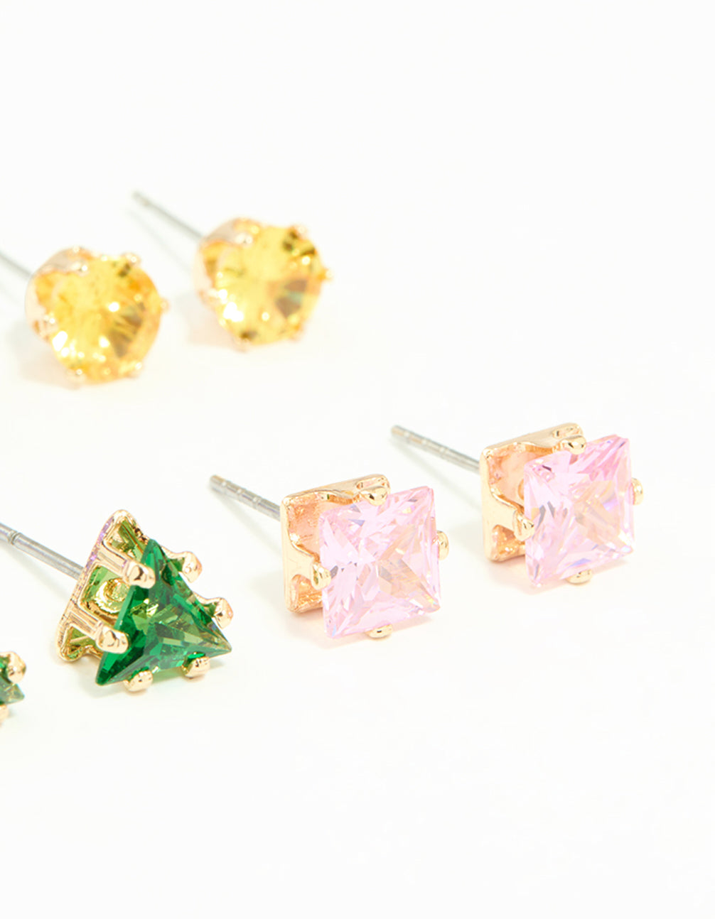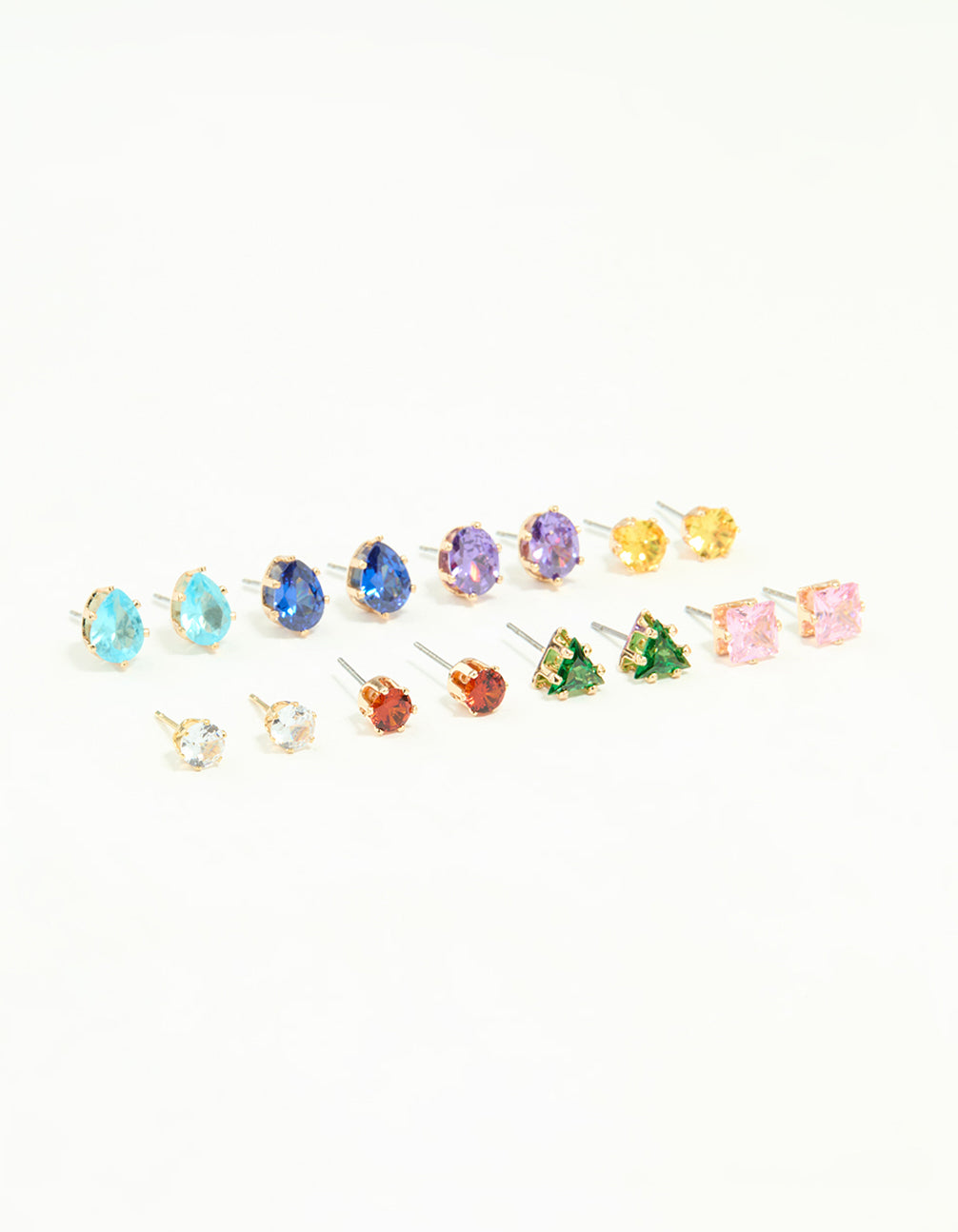 Gold Multicoloured Diamante Mixed Shape Stud Earrings 8-Pack