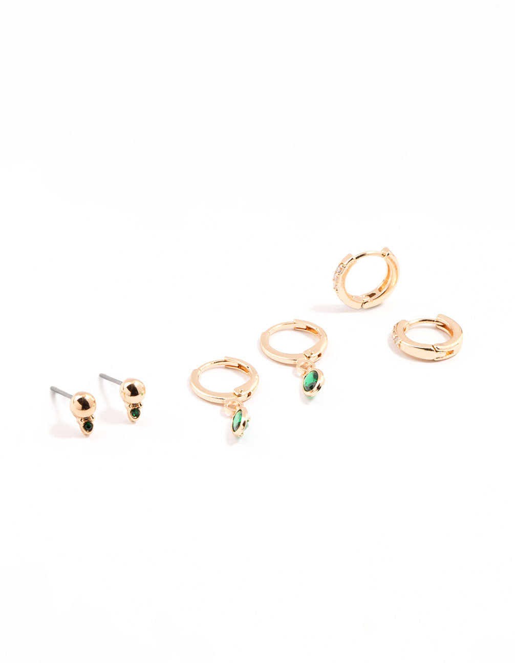 Gold Oval Stud & Hoop Earrings 3-Pack