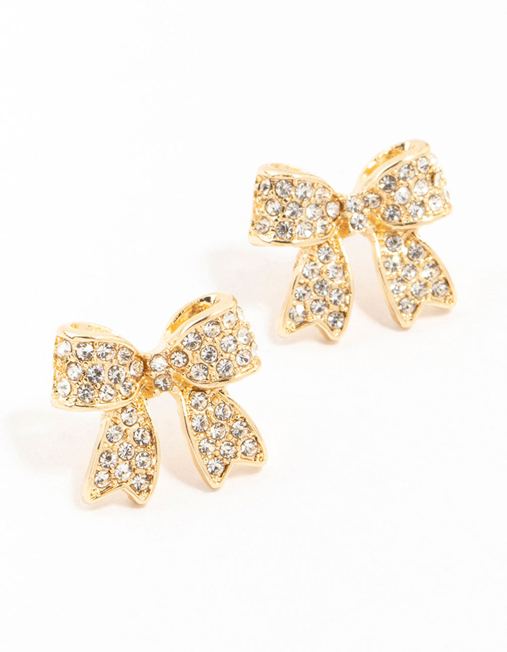Infuse elegance and playfulness into your look with these fun bow stud earrings. These bow earrings feature a trendy bow design and pretty pave set diamante crystals for a hint of sparkle.
