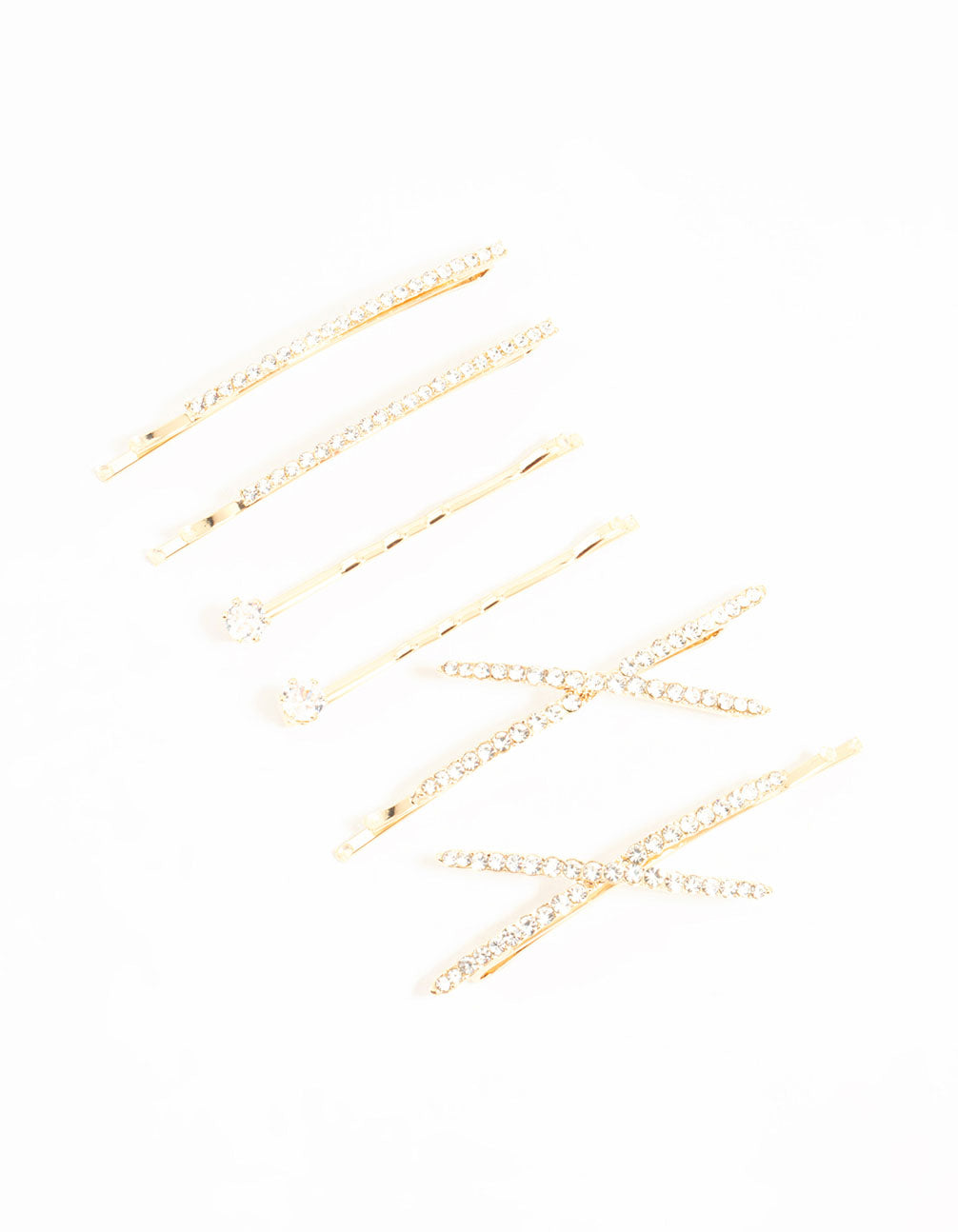This beautiful set of six gold pave hair slides enhances any bridal look. The set features six elegant hair slides adorned with sparkling diamante crystals, perfect for creating a memorable statement on your special day!