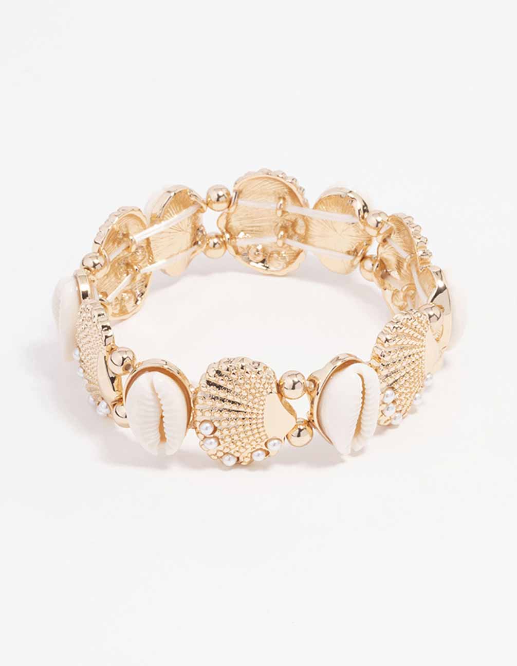 Style this Gold Pearl Genuine Shell Stretch Bracelet for a refined, beachy finish to your stack. This bracelet is crafted using genuine shell for a beachy look.