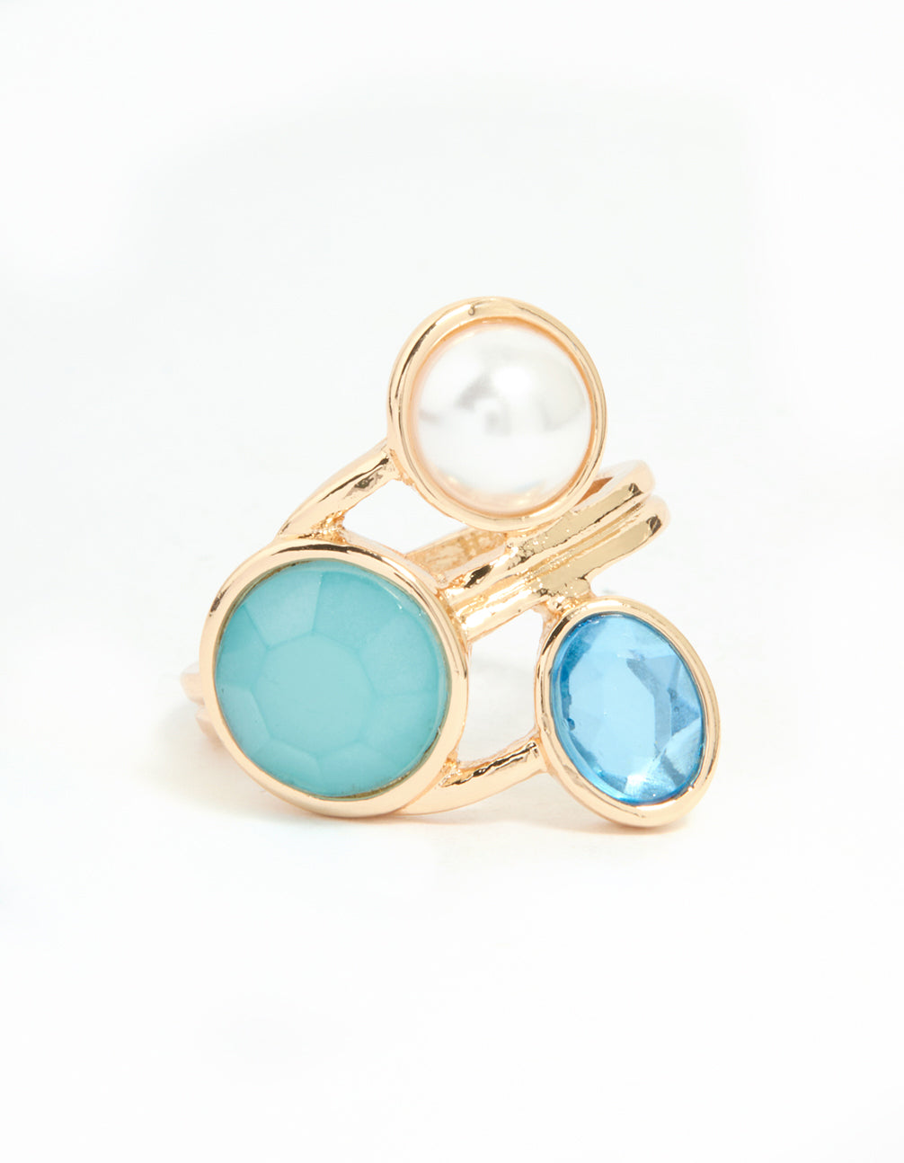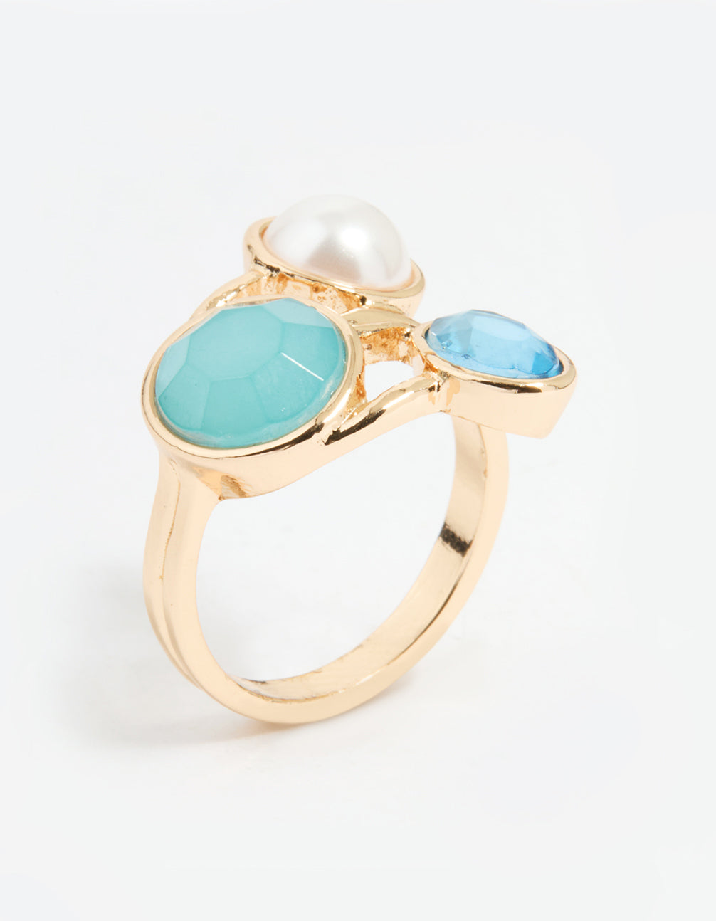 Add a touch of sparkle to your style with this Gold Pearl Statement Triple Blue & Clear Gems Ring. This ring combines timeless elegance with playful charm, featuring three dazzling gems in blue and clear tones that sit beautifully against its gold-toned finish. The statement design is perfect for adding a vintage-inspired edge to your outfit, whether you're dressing up for a night out or adding flair to your everyday look. Pair it with a flowy dress for a chic evening vibe or stack it with other rings for a bold, layered look. This stunning piece is ideal for anyone who loves jewellery with personality, making it a fabulous addition to your collection of rings and accessories.