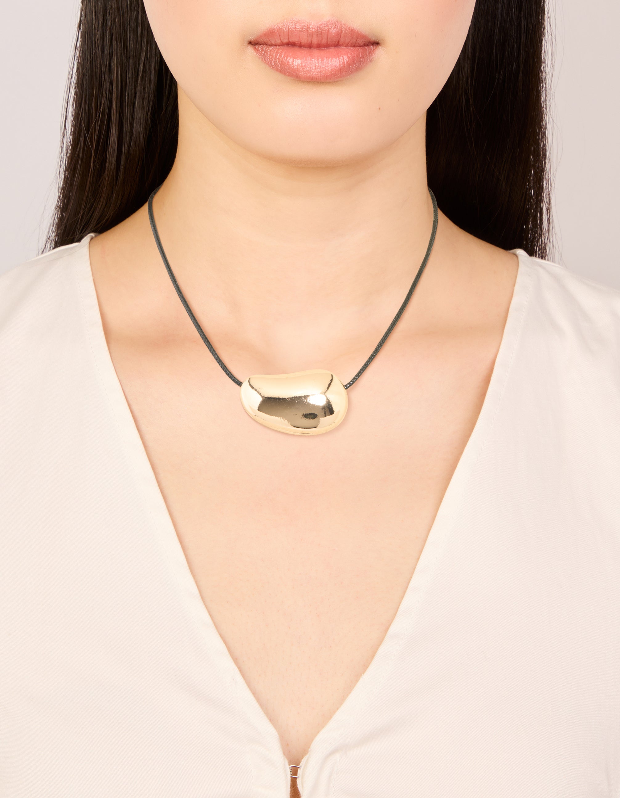 Gold Pebble Cord Medium Pendant Necklace