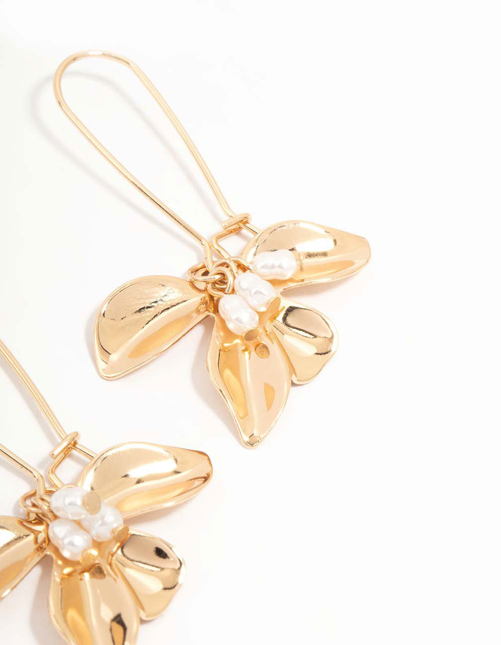 Gold Petal Pearl Large Fish Hook Earrings Gold Petal Pearl Large Fish Hook Earrings Gold Petal Pearl Large Fish Hook Earrings