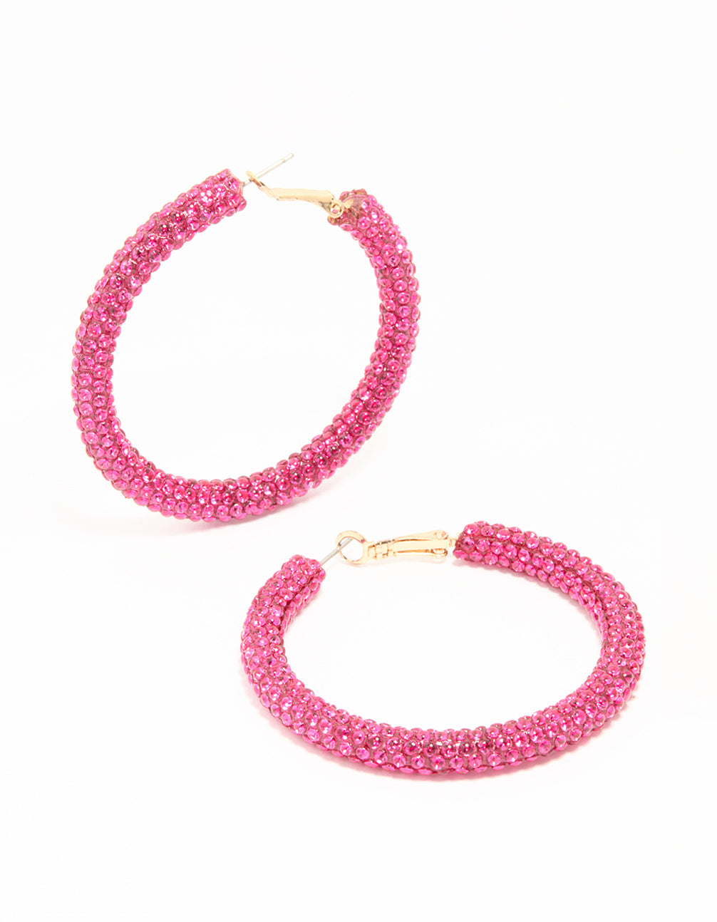 Gold Pink Diamante Hoop Earrings