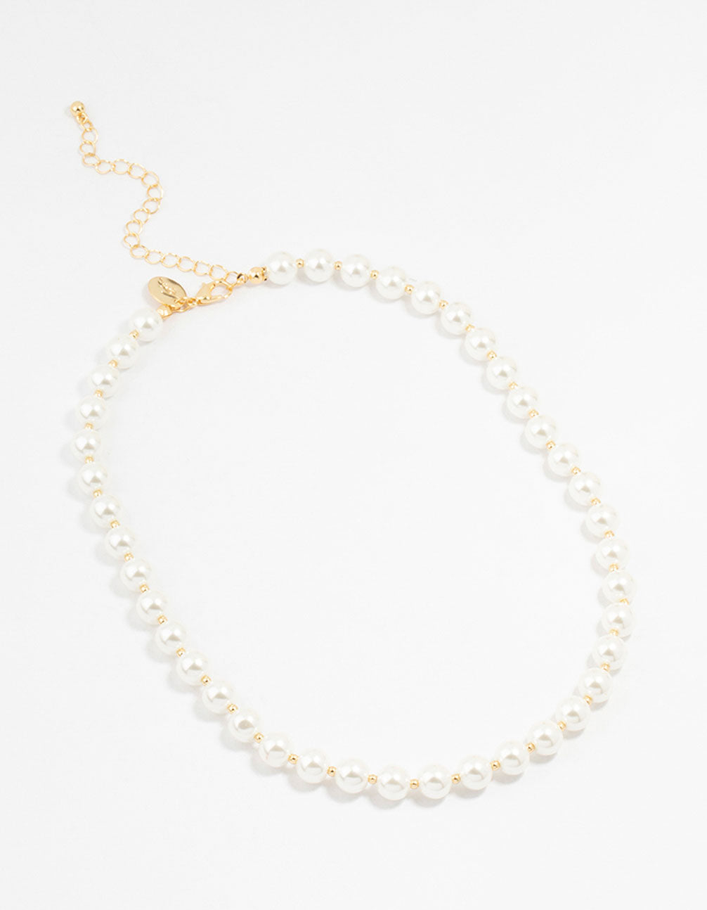 Gold Plated Alternating Medium Pearl & Ball Necklace