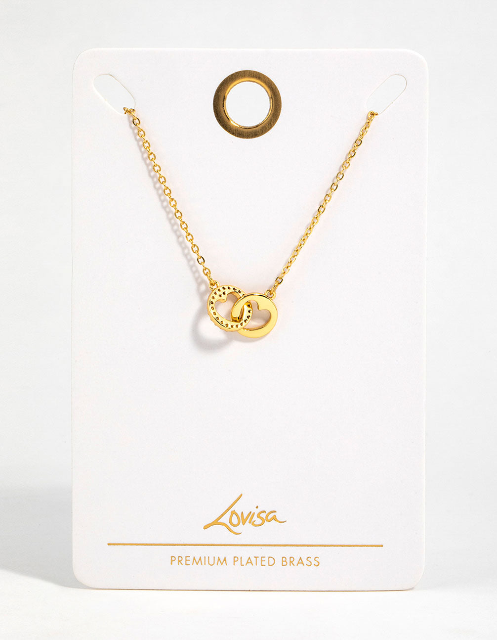 Gold Plated Brass Cubic Zirconia Double Heart Link Pendant Necklace