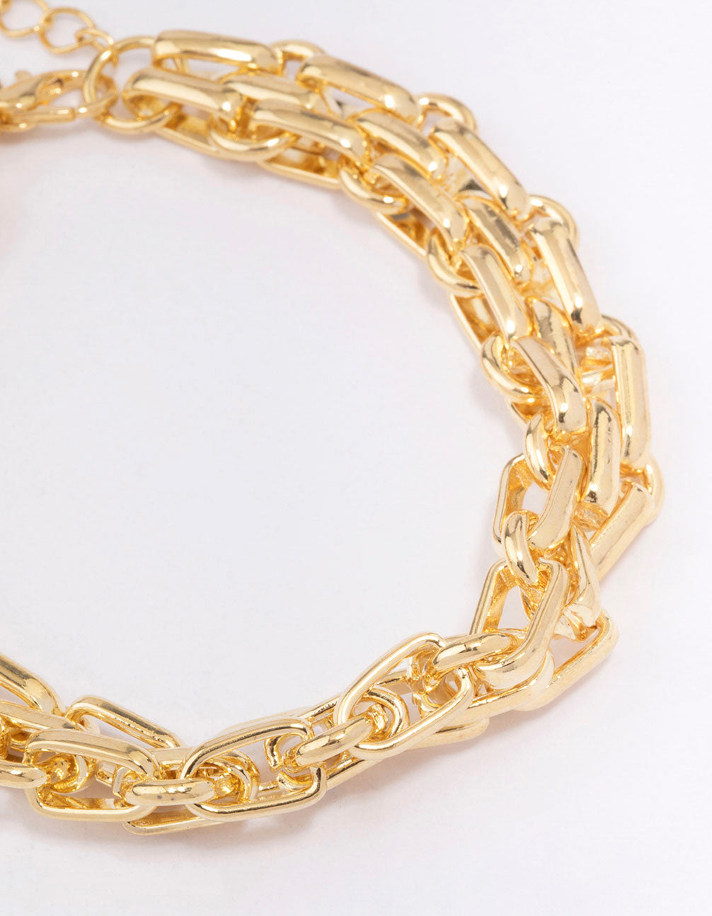 This gold plated bracelet features a unique, woven design for added interest to your stack.