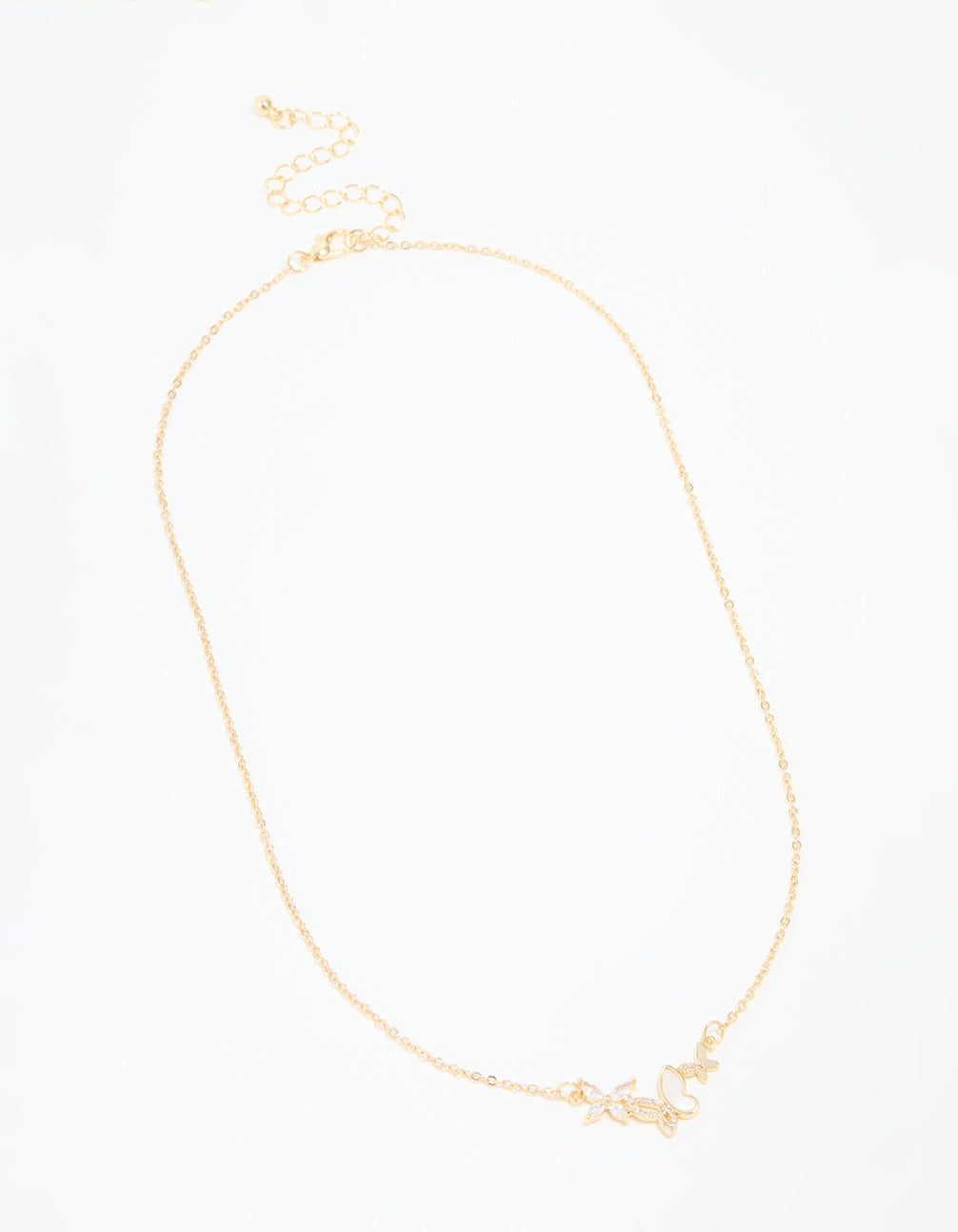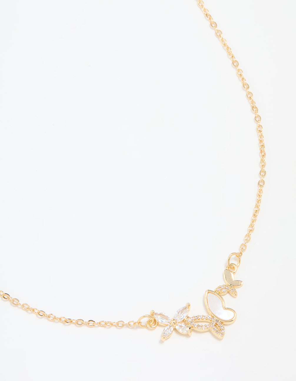 Gold Plated Cubic Zirconia Butterfly Pendant Necklace