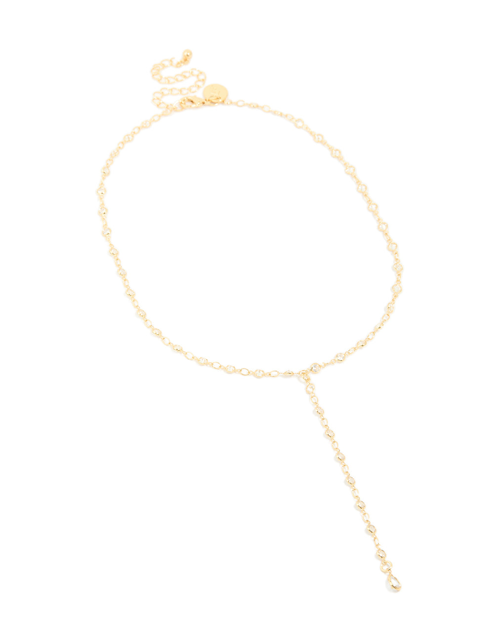 Elevate your style with this Gold Plated Cubic Zirconia Circle Detail Y-Necklace. This elegant Y-necklace features a sleek gold-plated chain with delicate circle details, adding a modern twist to a timeless design. The shimmering cubic zirconia crystals bring a touch of glamour, making it perfect for both casual and formal looks. Whether you're dressing up for a dinner date or adding a chic accent to your everyday outfit, this necklace is endlessly versatile. Pair it with a V-neck dress or a simple blouse to let its sophisticated charm shine. A stunning accessory for those who love contemporary yet classic jewellery!