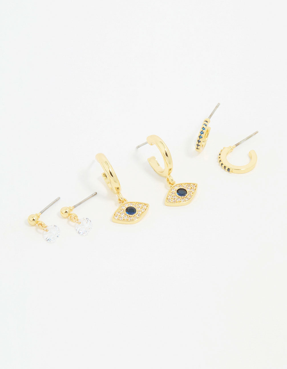 • Gold Plated Cubic Zirconia Evil Eye Earrings 3-Pack - link has visual effect only