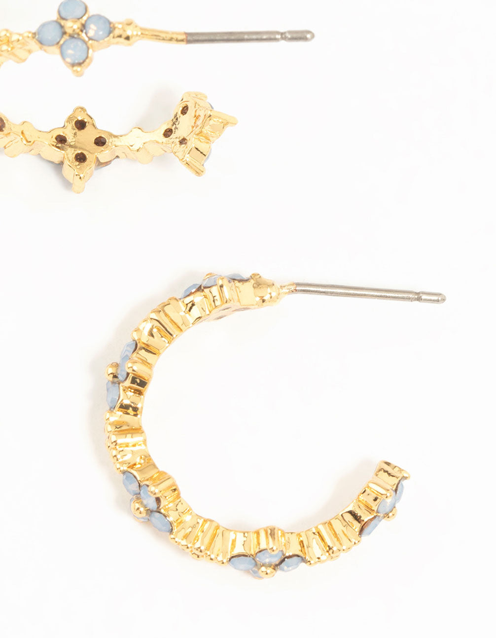Get ready to dazzle with these gold-plated charm earrings! Featuring a delicate blue cubic zirconia floral design, they're perfect for adding a touch of floral glam to any look.
