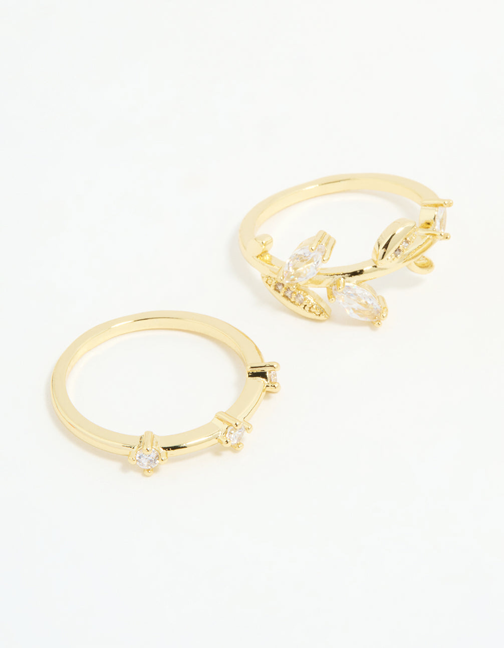Gold Plated Cubic Zirconia Leafy Station Rings 3-Pack