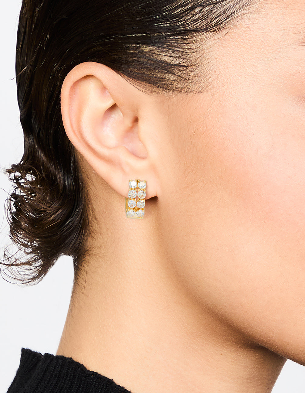 Add a touch of sparkle to your everyday look with these Gold Plated Cubic Zirconia Medium Oval Hoop Earrings. Crafted from gold-plated metal, these medium-sized hoops are adorned with brilliant cubic zirconia crystals for a subtle yet glamorous vibe. Perfect for dressing up a casual outfit or adding elegance to your evening wear, these versatile earrings are a must-have. Their classic round shape and luxe gold finish make them ideal for pairing with anything from flowy dresses to tailored blazers. Whether you're heading to brunch, a date, or a party, these hoops will be your go-to jewellery piece for effortless style.