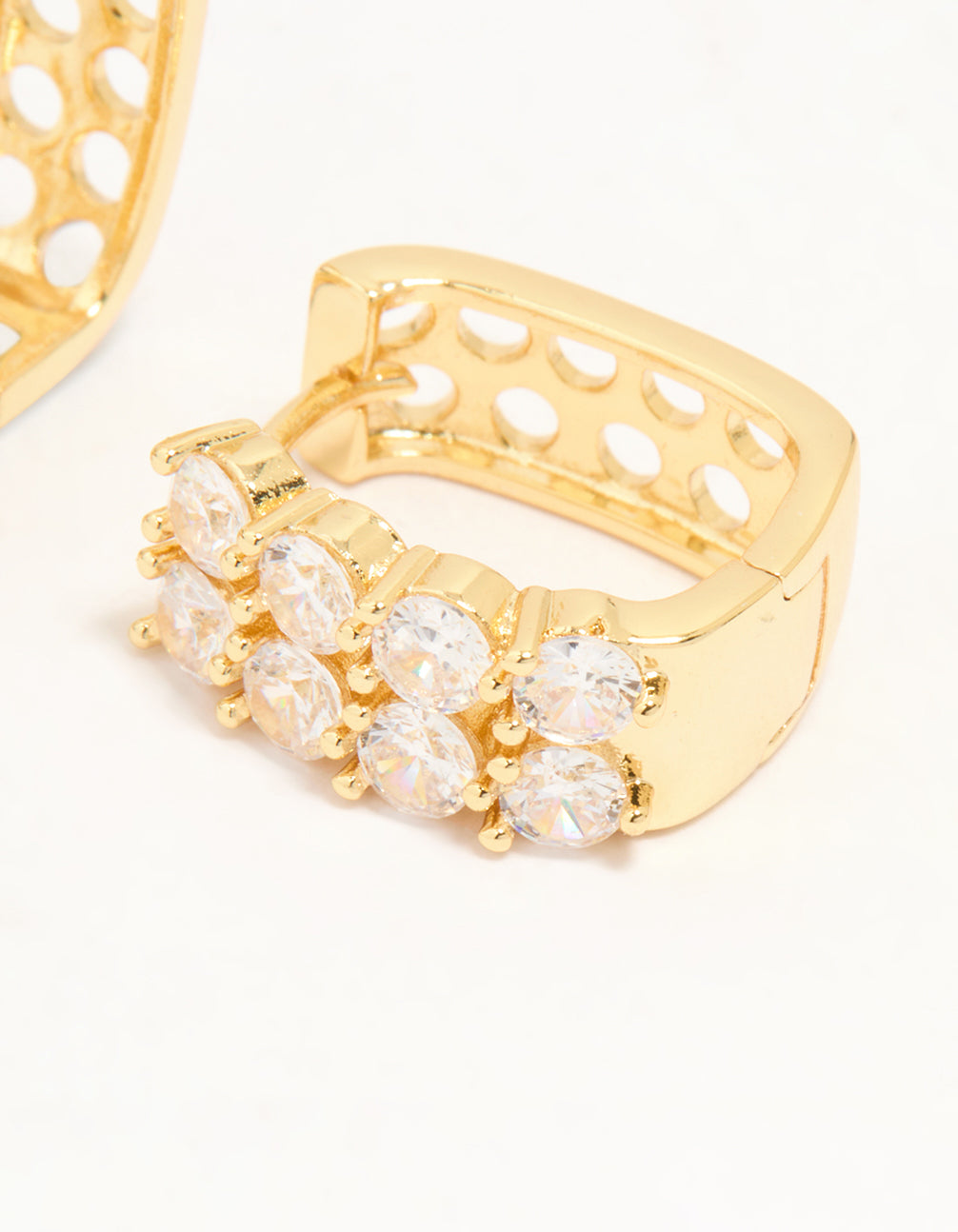 Gold Plated Cubic Zirconia Medium Oval Hoop Earrings