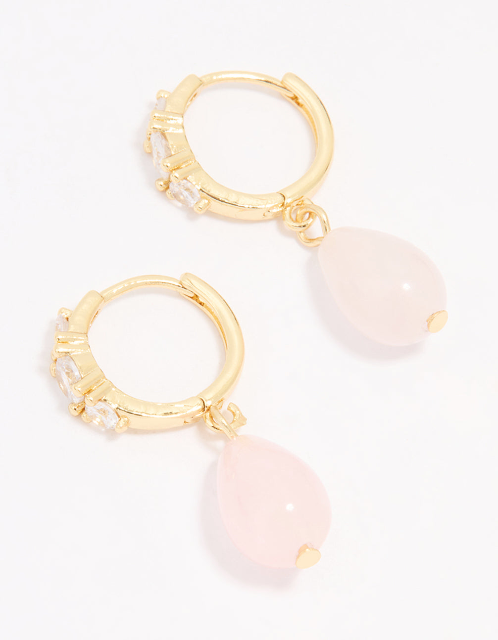Gold Plated Cubic Zirconia Semi Precious Drop Earrings